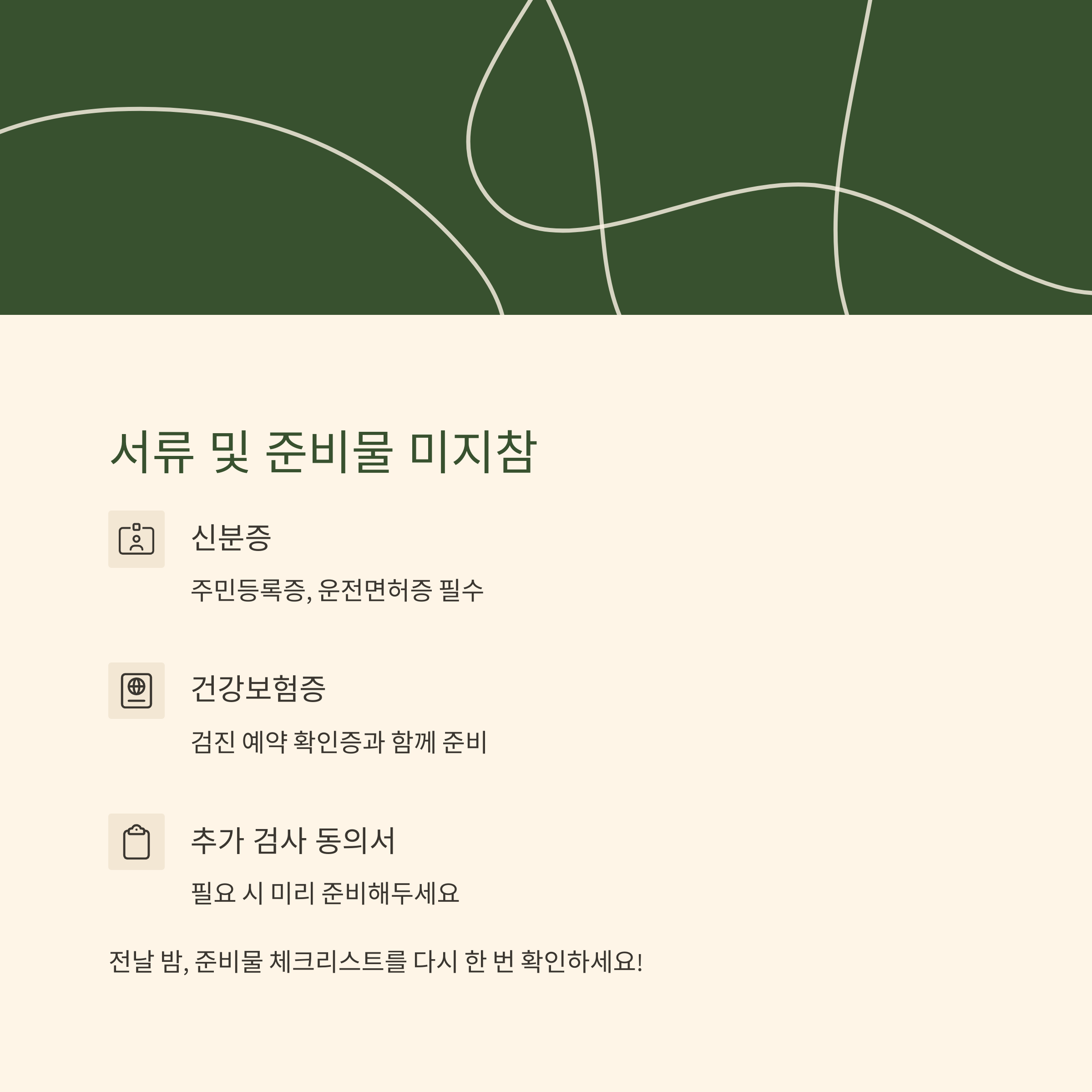 당일 서류를 깜빡하면 검진 자체가 지연되거나 불이익이 있을 수 있습니다.