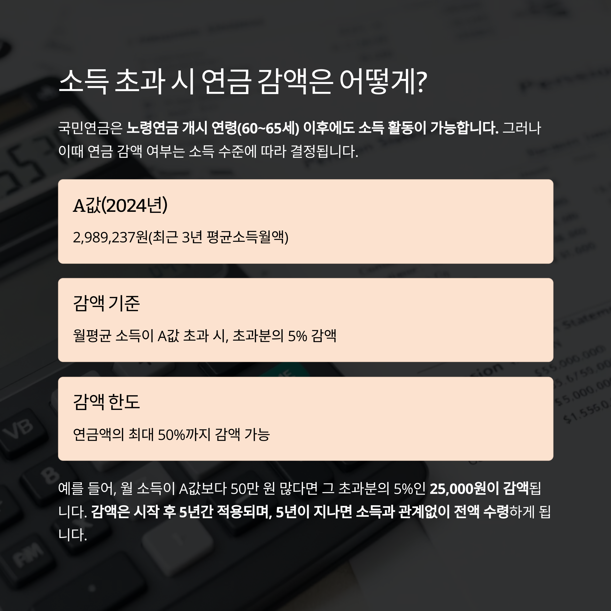소득 활동 가능하지만, 일정 기준 초과 시 연금 감액