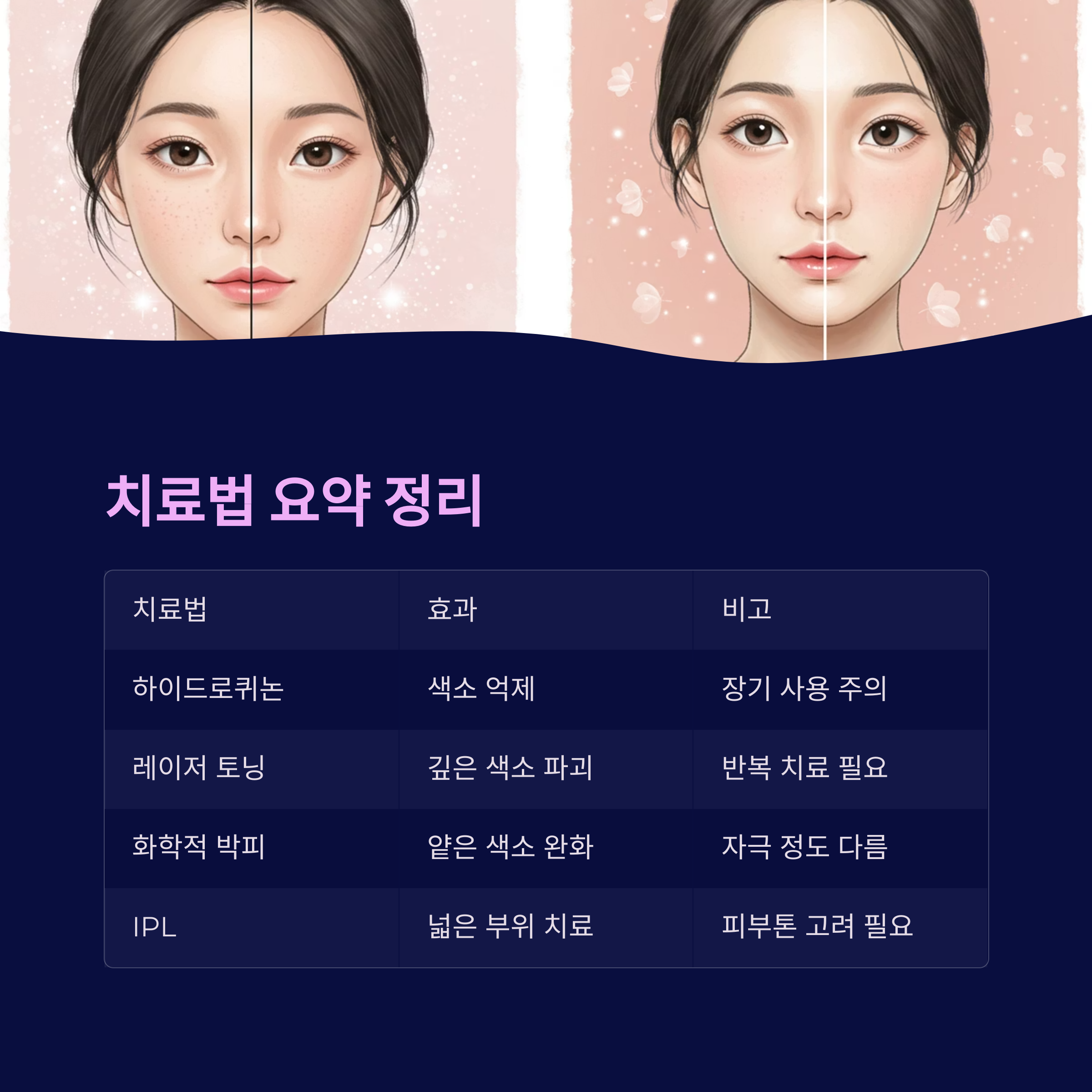 | 레이저 토닝 | 깊은 색소 파괴, 피부재생 유도 | 반복 치료 필요, 비용 고려 |