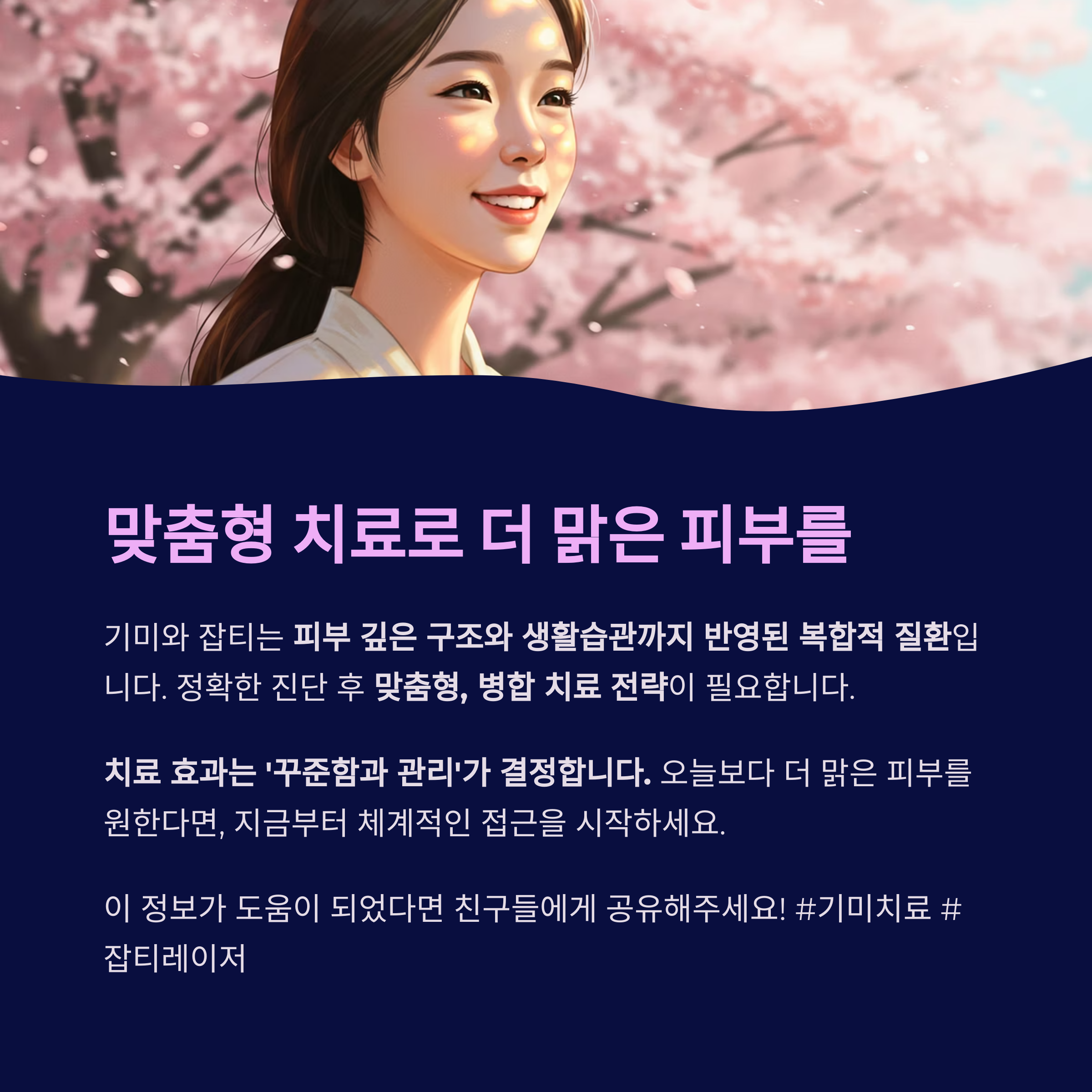 기미와 잡티는 단순한 색소 질환이 아니라, 피부의 복합적 문제와 관련된 미용·의학적 이슈입니다.