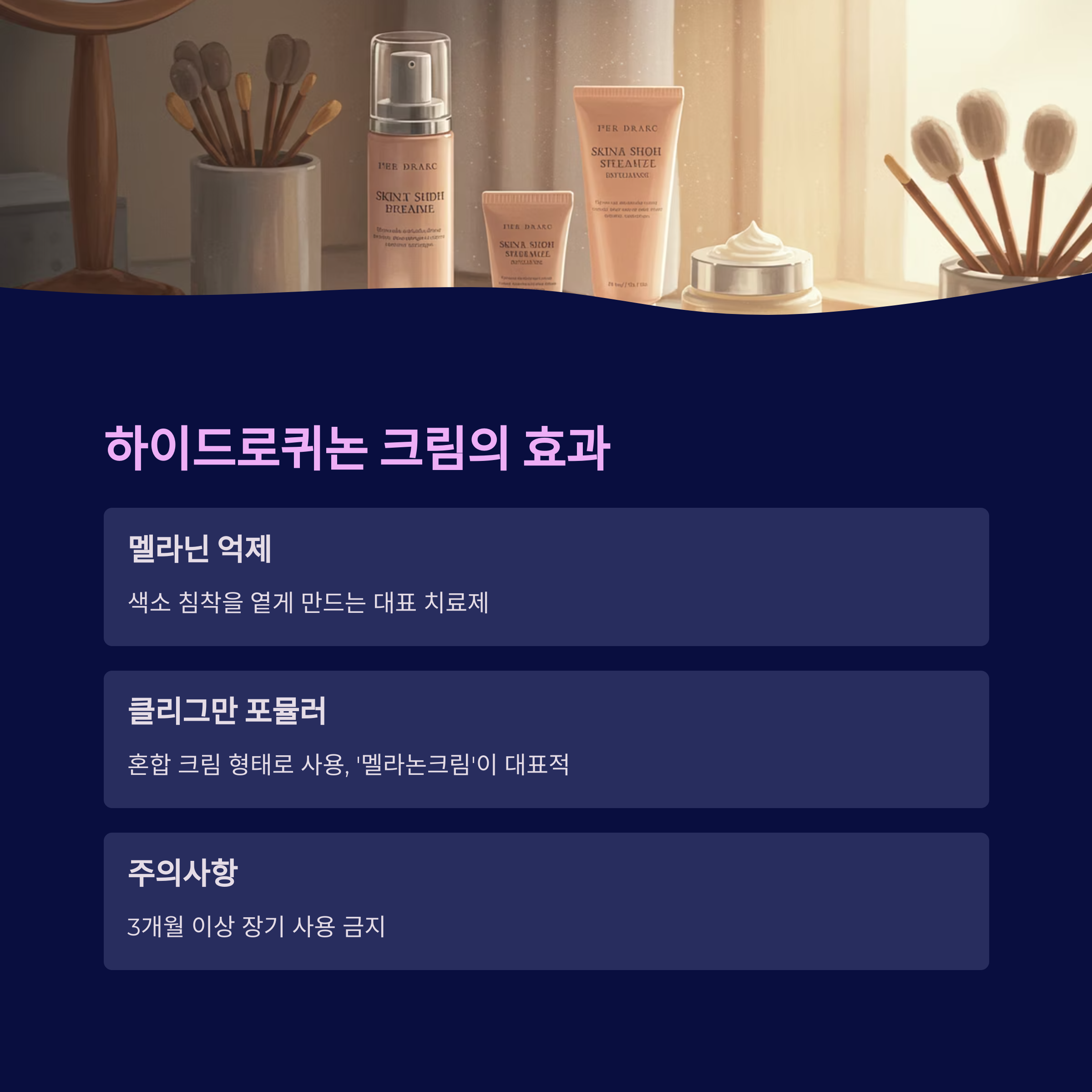 | 하이드로퀴논 크림 | 색소 억제 | 장기 사용 시 부작용 주의 |