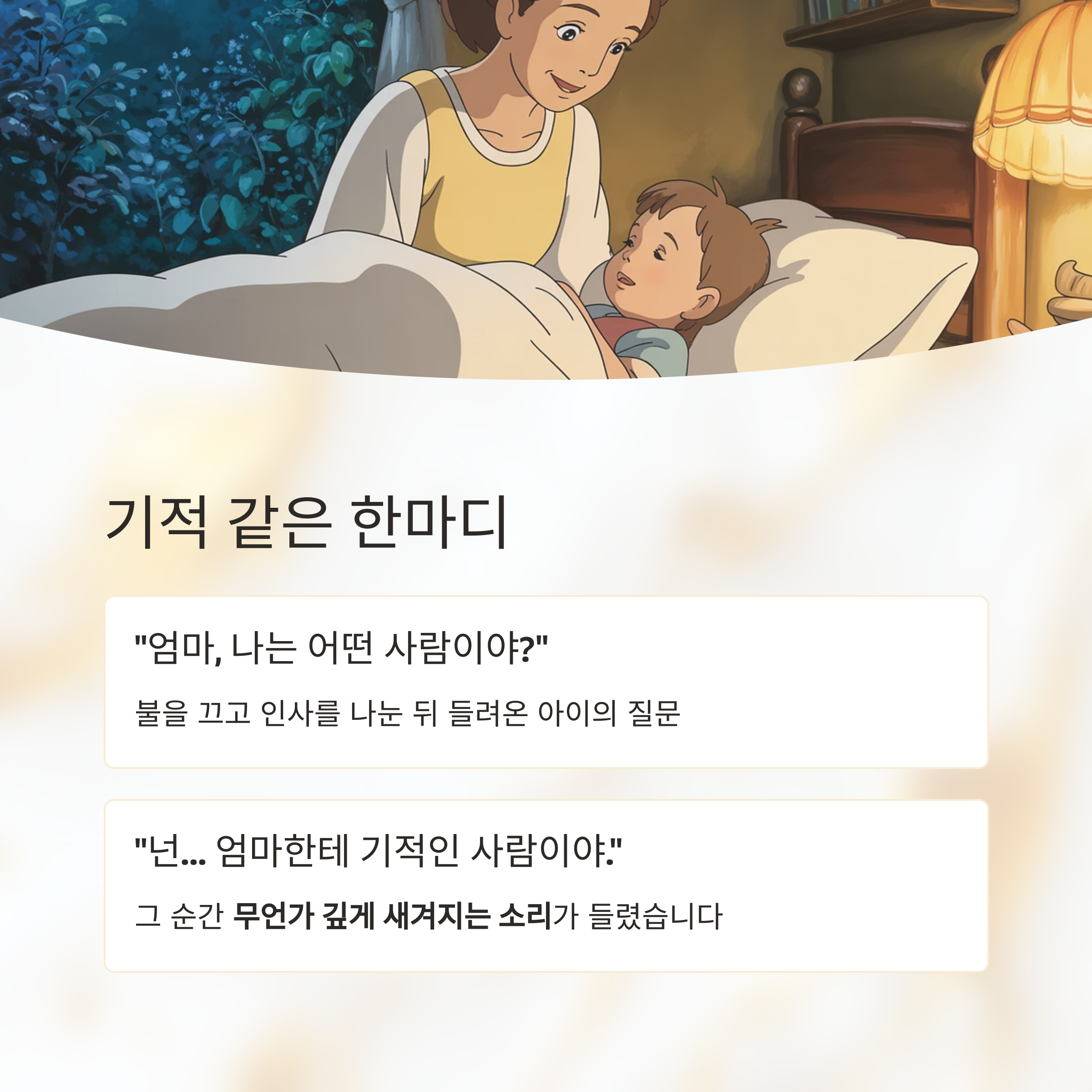 | 잠들기 전 | “오늘 너랑 하루 보낼 수 있어서 좋았어.” | 안정감, 정서적 연결 |