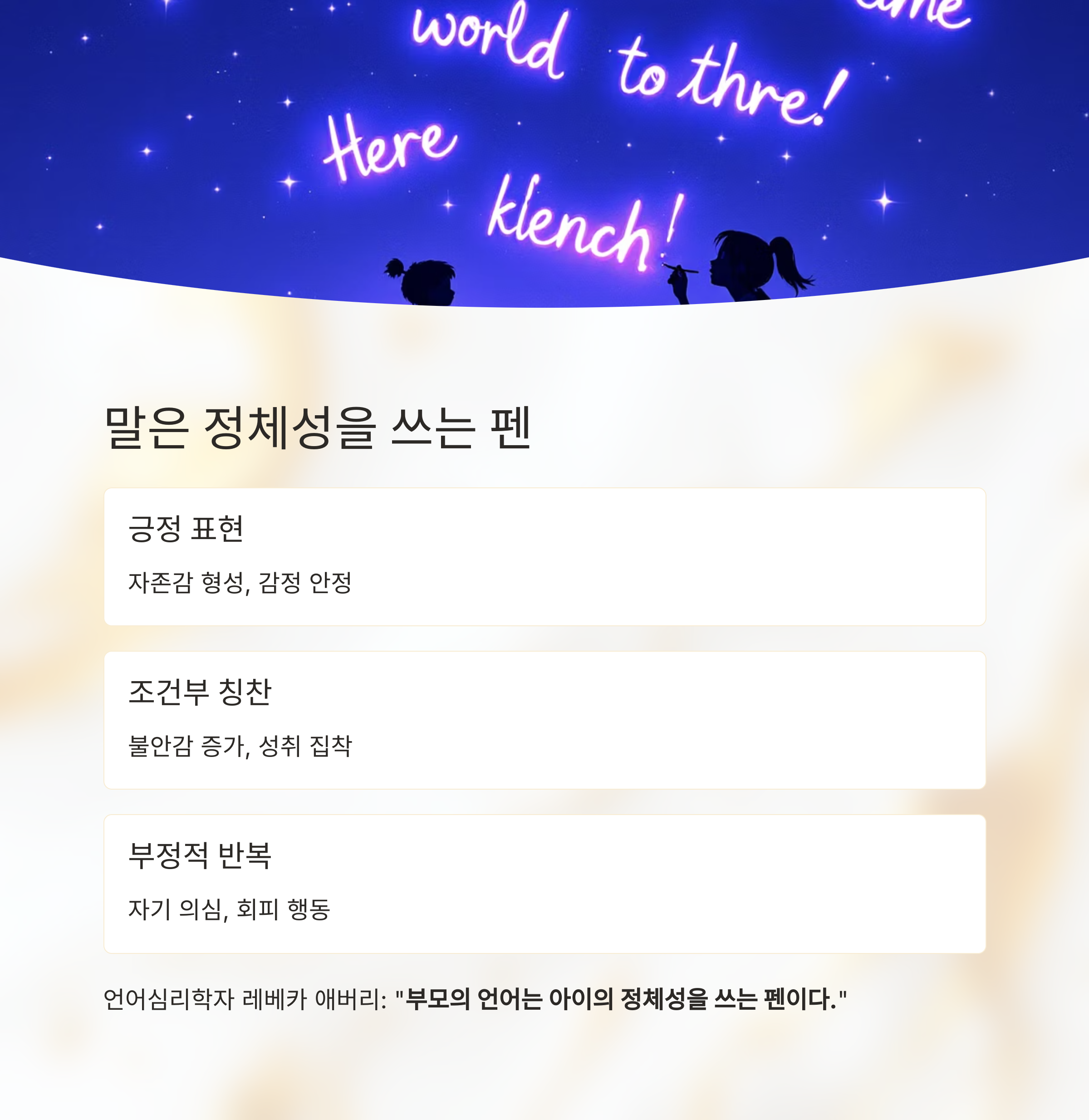 “부모의 언어는 아이의 정체성을 쓰는 펜이다.”