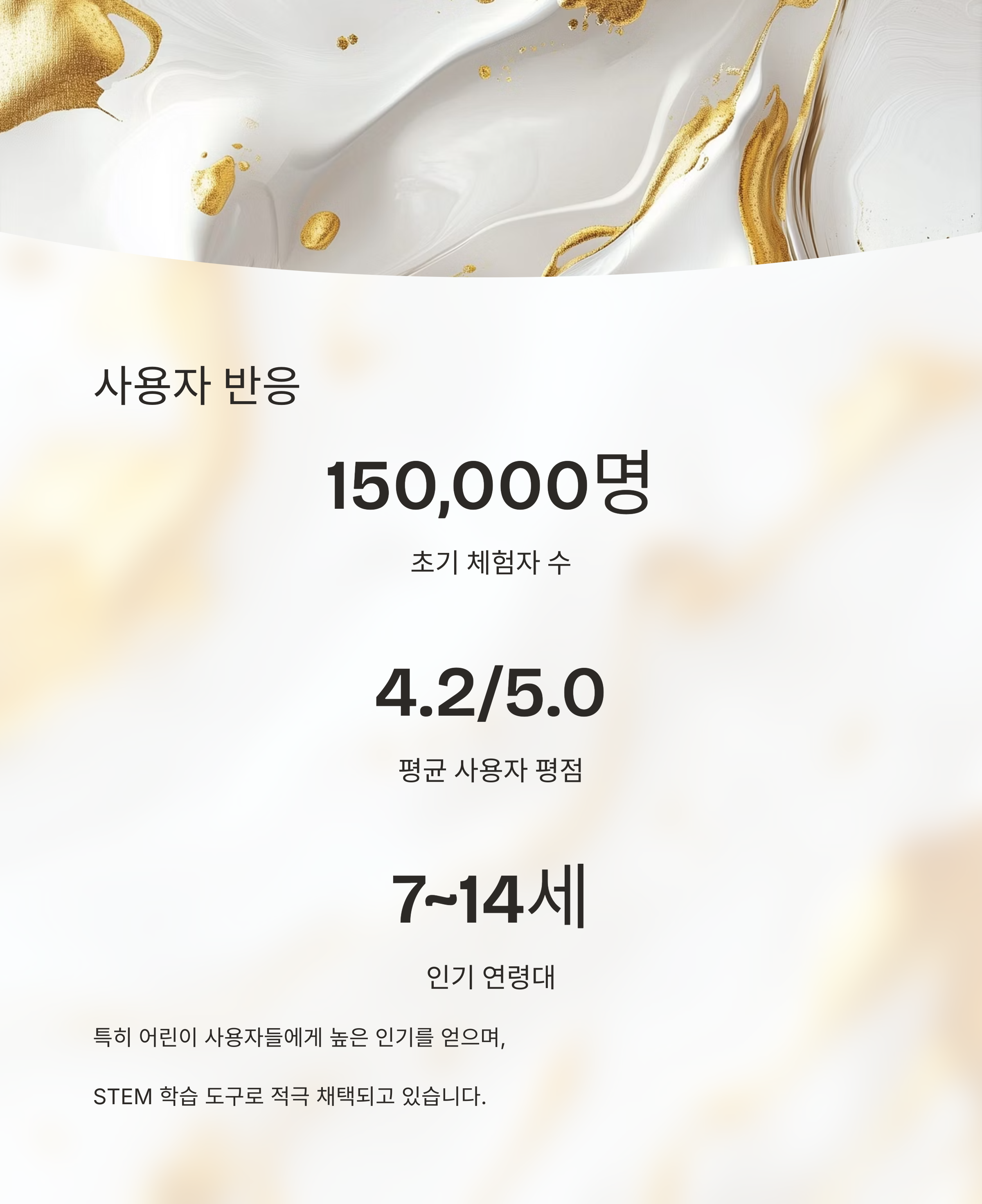 특히 7~14세 어린이 사용자들에게 높은 인기를 얻으며, 교육 현장에서는 STEM 학습 도구로 적극 채택되고 있습니다.