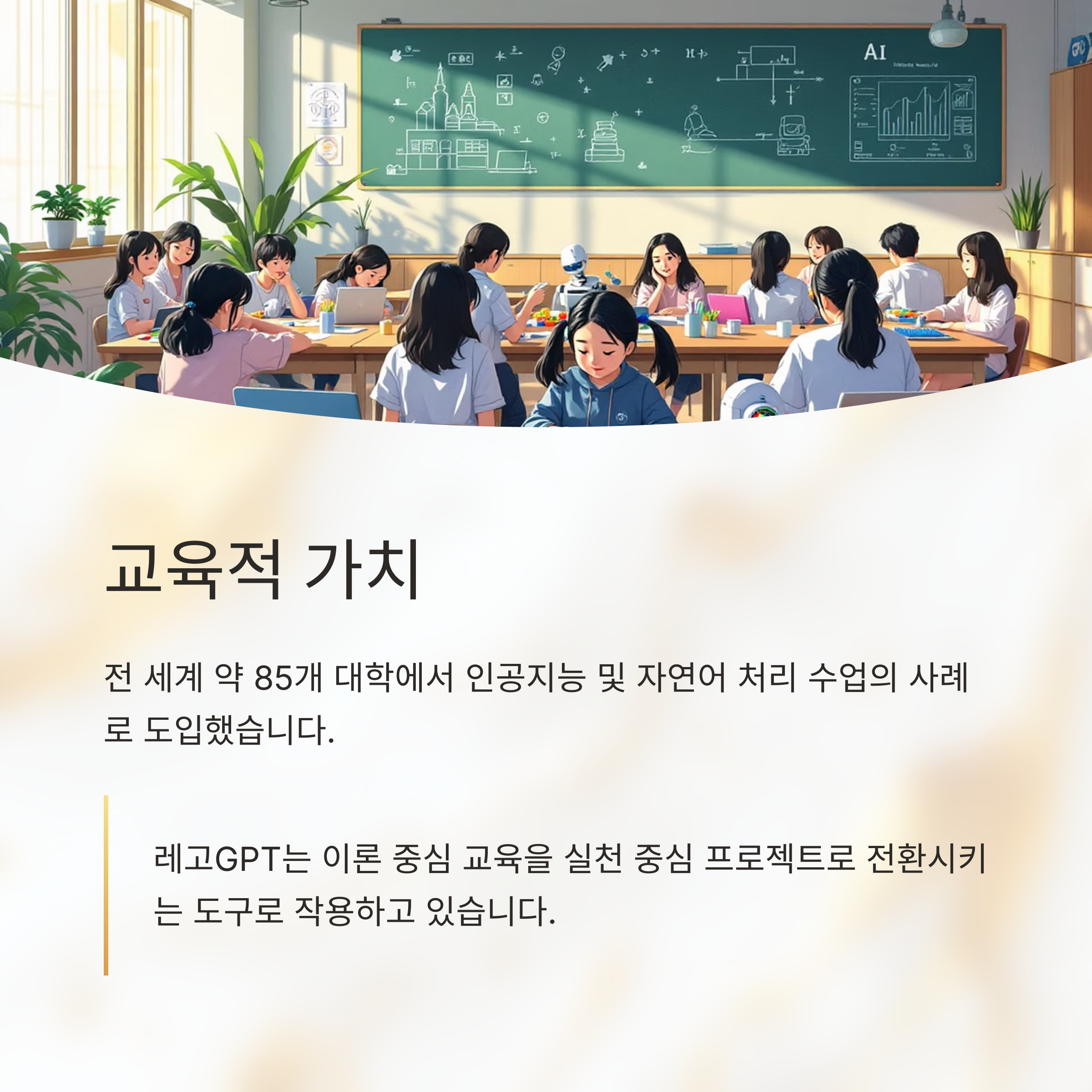 "레고GPT는 이론 중심 교육을 실천 중심 프로젝트로 전환시키는 도구로 작용하고 있습니다."