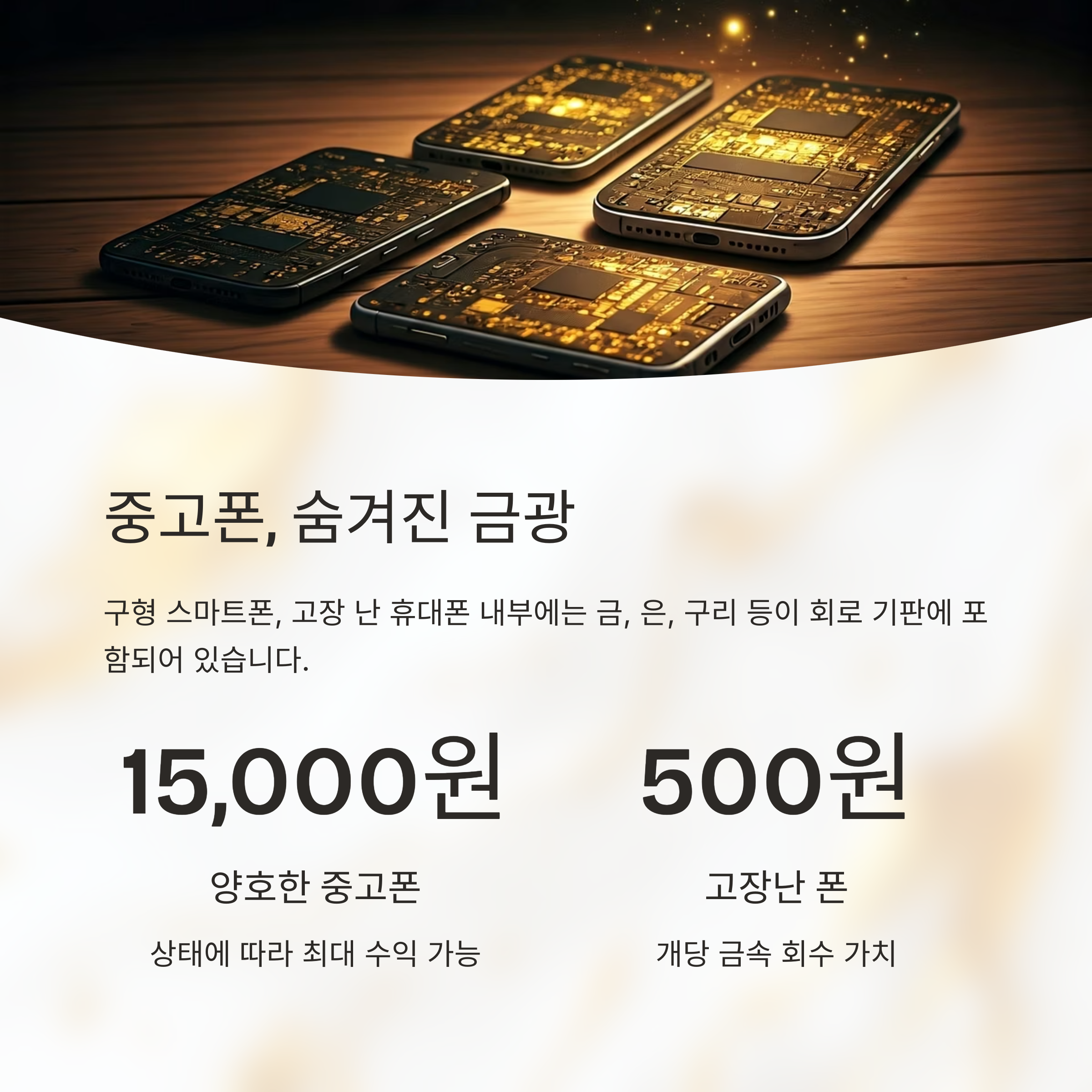 | 중고폰 (양호) | 3,000~15,000원 | 금, 은, 구리 |