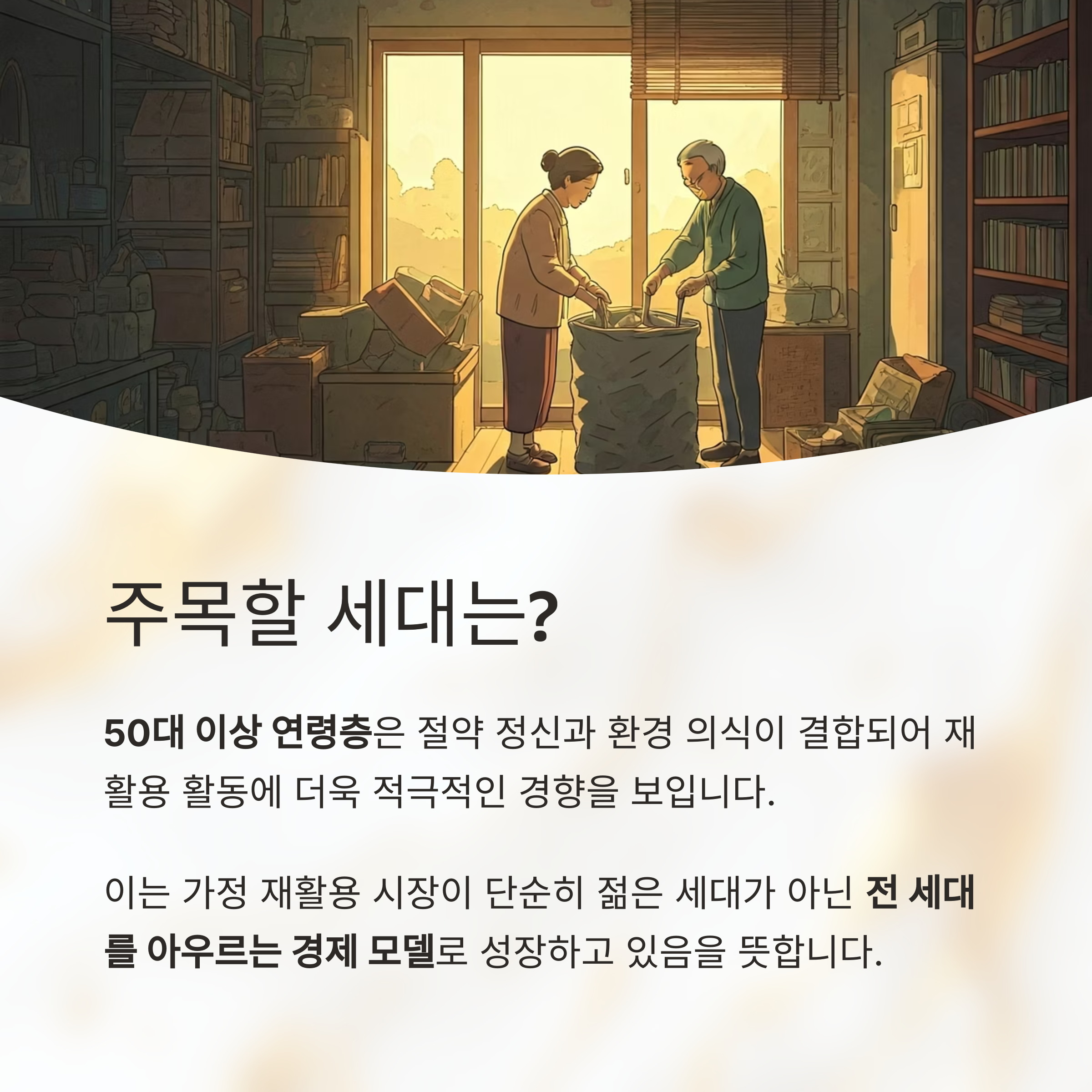이는 가정 재활용 시장이 단순히 젊은 세대가 아닌 전 세대를 아우르는 경제 모델로 성장하고 있음을 뜻합니다