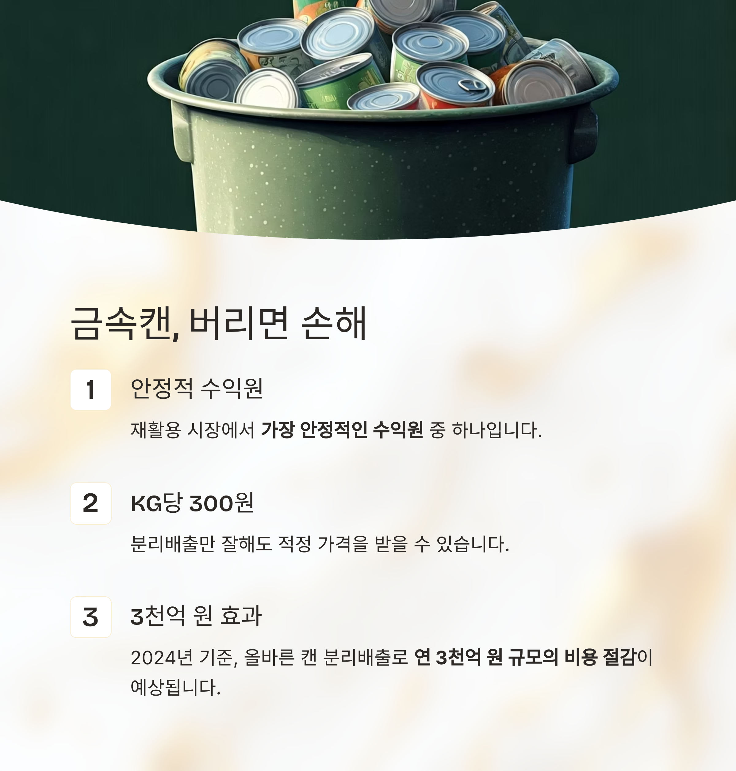 2024년 기준, 올바른 캔 분리배출만으로도 연 3천억 원 규모의 비용 절감 효과가 예상됩니다