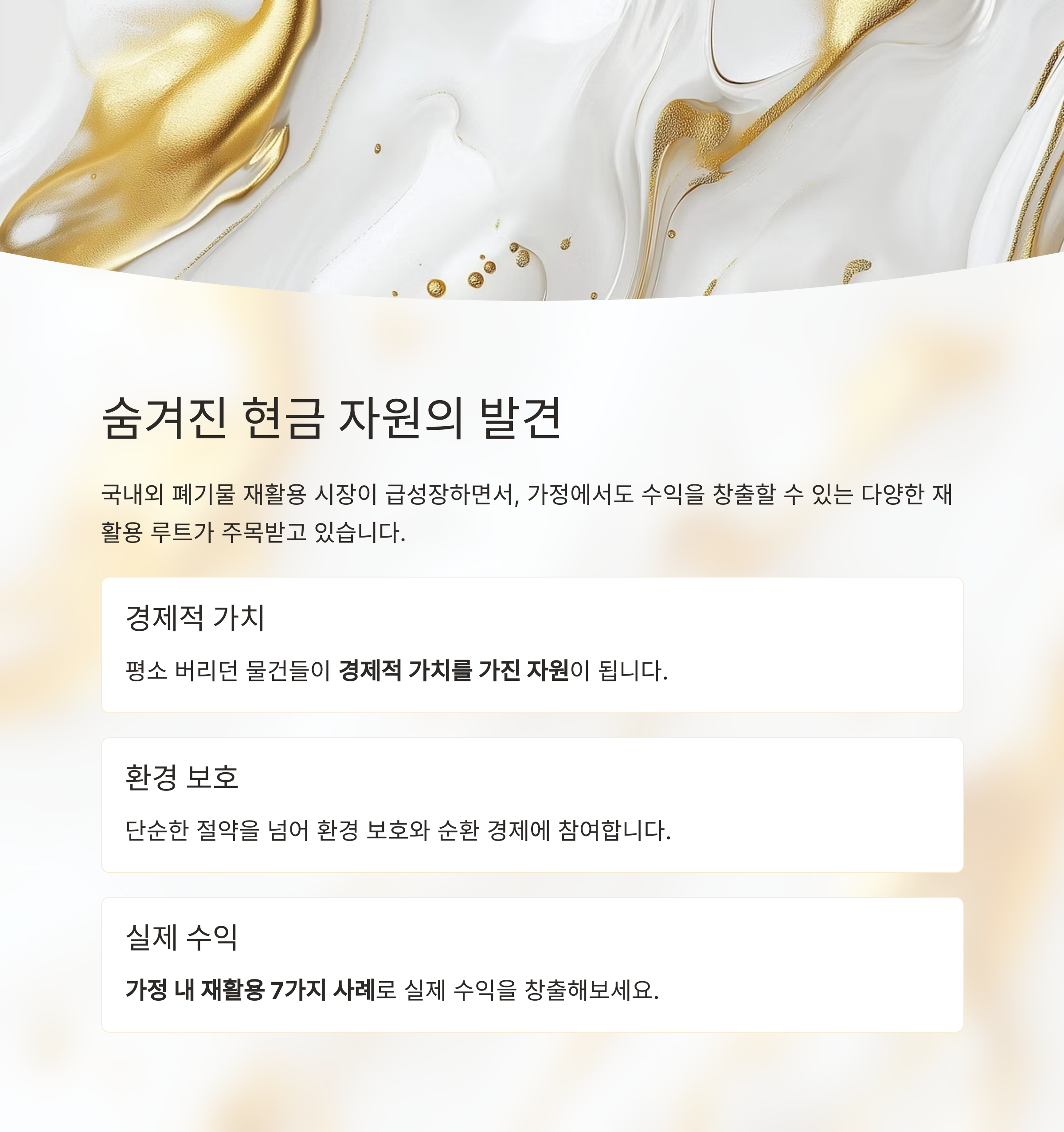 본 글에서는 실제 수익이 가능한 가정 내 재활용 7가지 사례와 그 이유를 소개합니다
