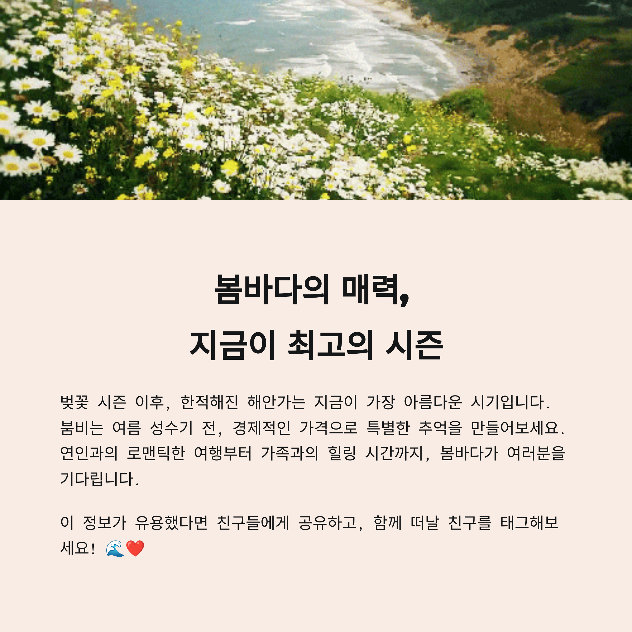 이번 이벤트는 따뜻한 봄철 바다 여행을 위한 최고의 혜택입니다.