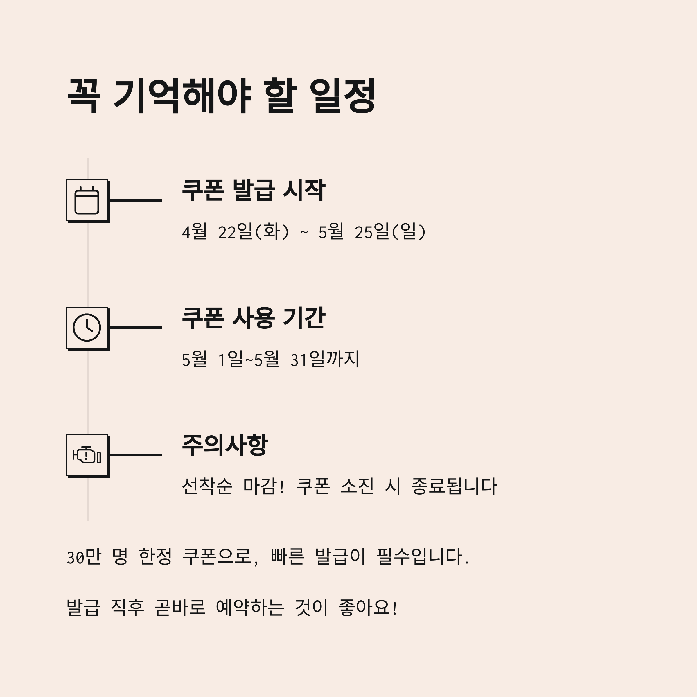 - 쿠폰 발급 기간: 2025년 4월 22일(화) ~ 5월 25일(일)까지