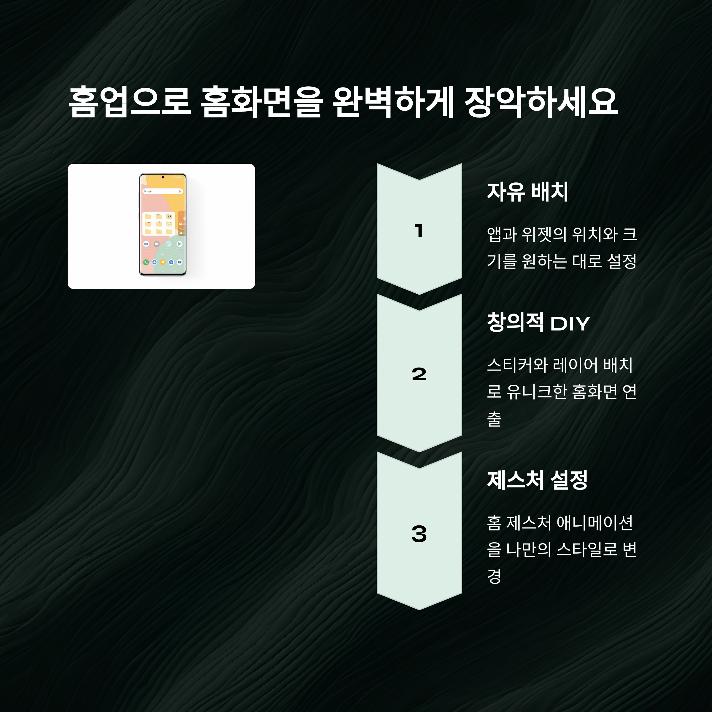- 홈 화면 위젯, 폴더 디자인, 앱 배치 위치 자유 조정