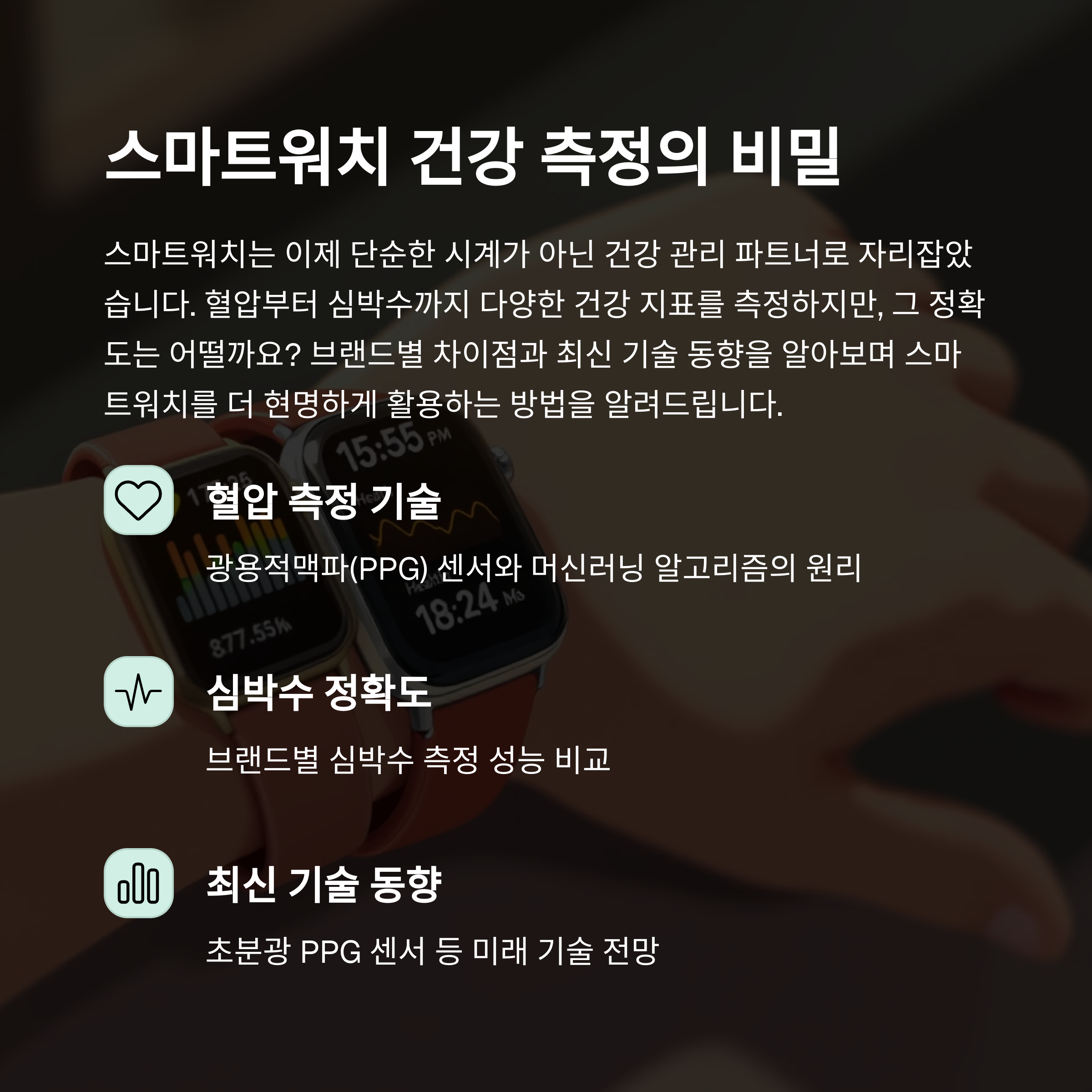 안녕하세요! 요즘 주변을 보면 스마트워치 하나쯤은 다들 차고 다니시더라고요. 저도 갤럭시 워치로 심박수 체크하는 게 습관이 됐는데요. 어느 날 이런 생각이 들더라고요. '이 숫자, 진짜 정확할까?' 그래서 최신 연구 결과와 전문가 의견을 바탕으로 스마트워치 혈압과 심박수 측정 정확도를 싹~ 정리해 봤습니다. 2025년 현재 가장 신뢰할 수 있는 정보만 모았으니, 궁금하셨던 분들은 꼭 끝까지 읽어보세요!