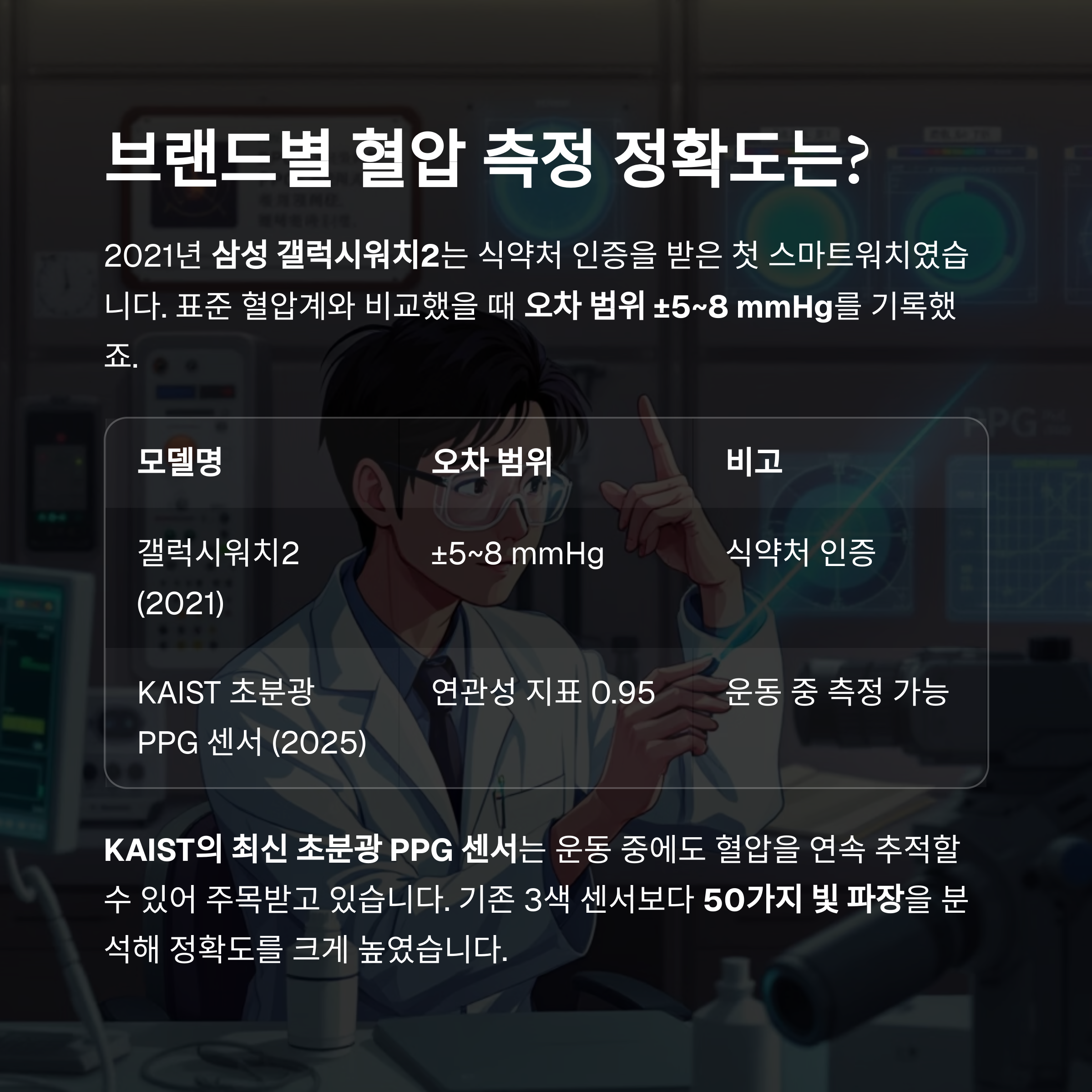 | 갤럭시워치2 (2021) | ±5~8 mmHg | 식약처 인증 |