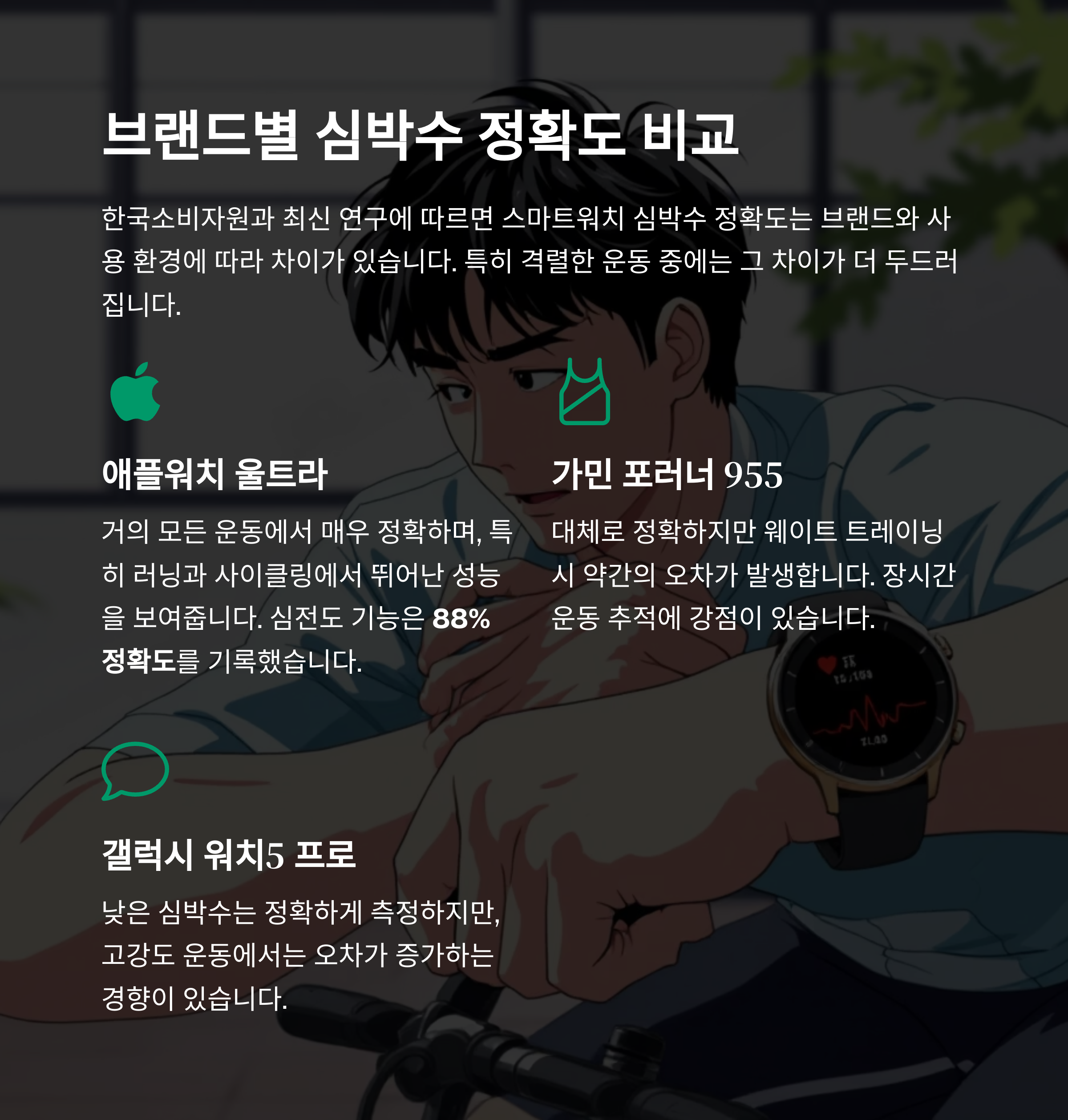 - 애플워치 울트라: 거의 모든 운동에서 매우 정확, 특히 러닝·사이클링에 강함