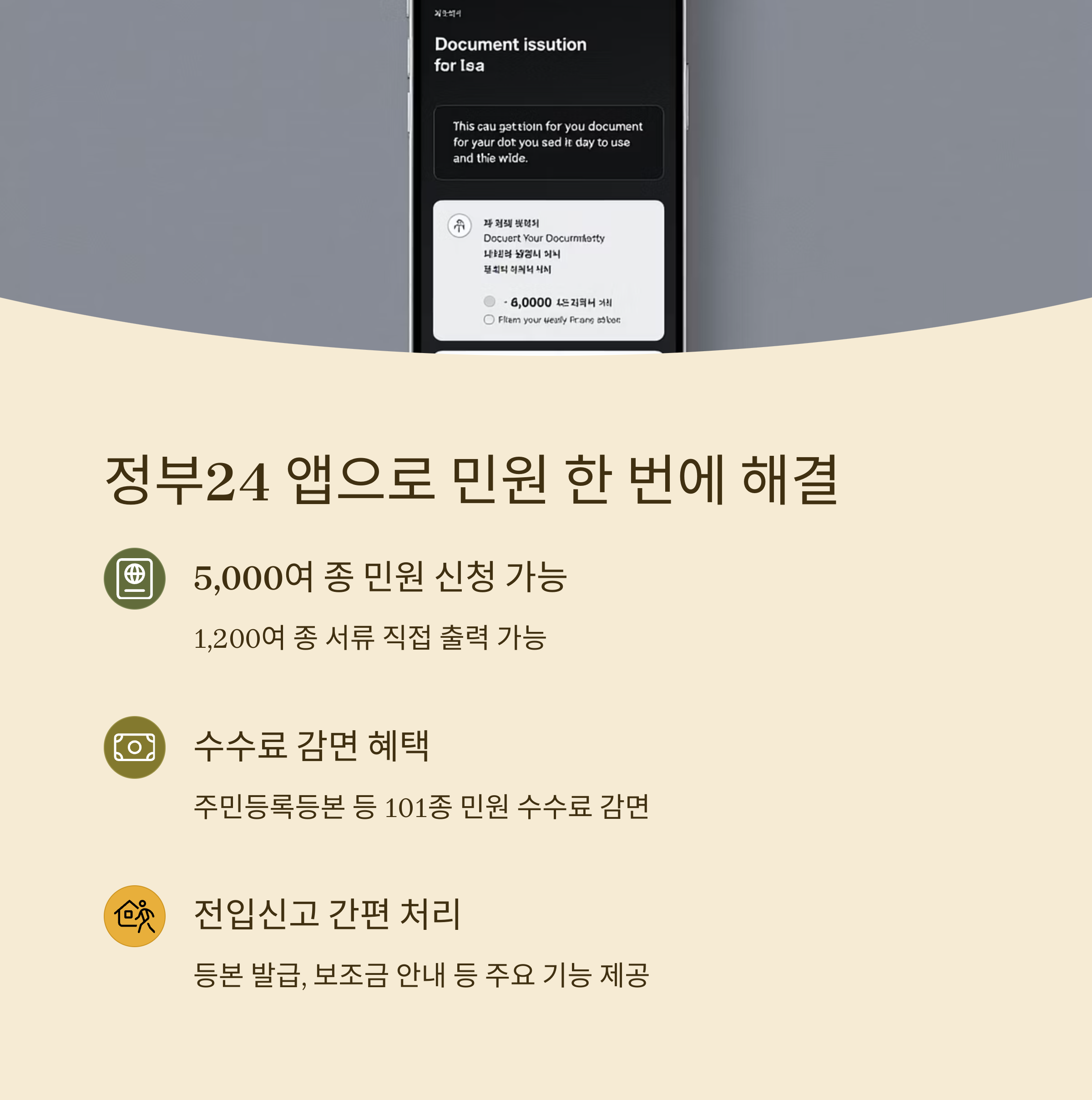 주민등록등본 발급, 각종 신고, 정책 정보 확인 등 다양한 행정 업무를