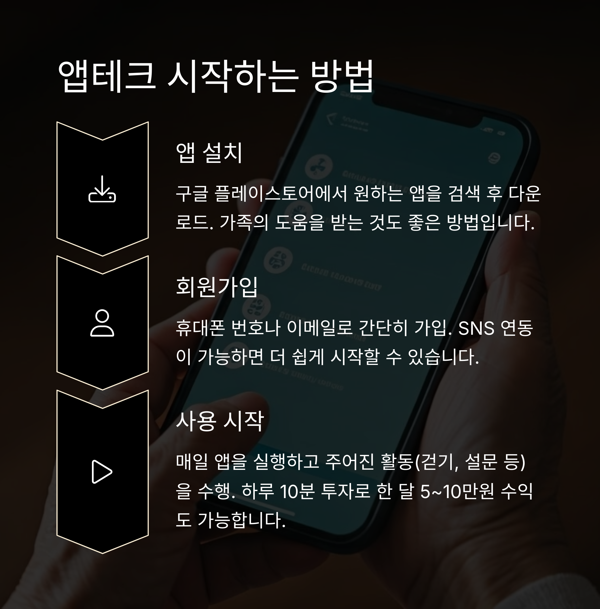 앱테크에 처음 도전하는 60대라면 다음과 같은 순서를 따르세요.