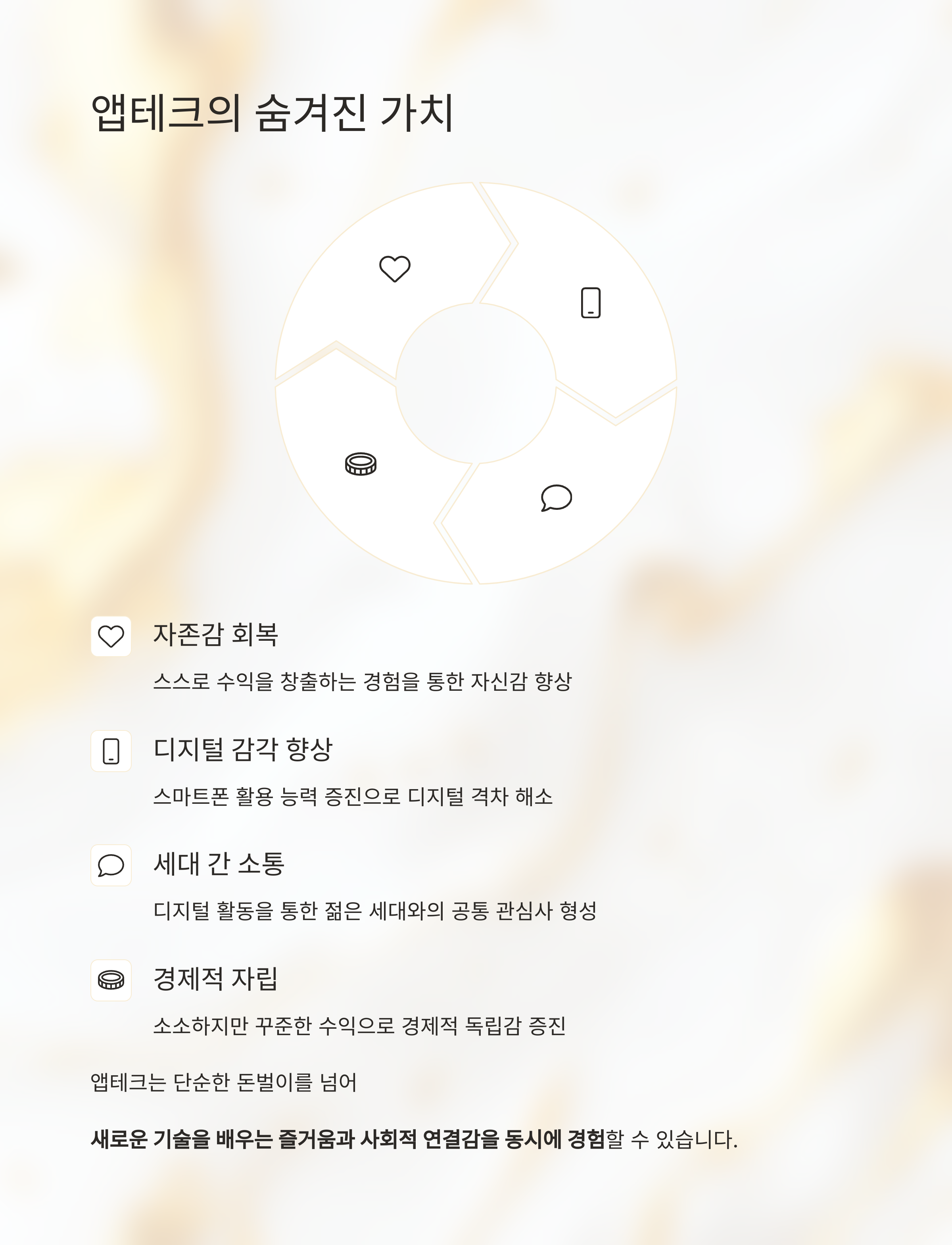 앱테크는 단순한 돈벌이를 넘어 자존감 회복, 디지털 감각 향상, 세대 간 소통을 가능하게 합니다.