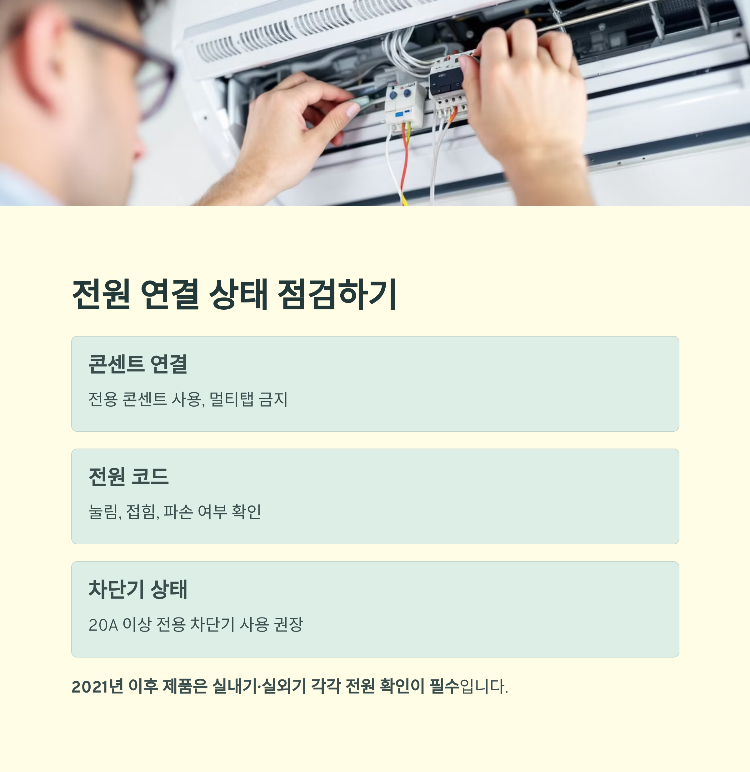 2021년 이후 제품은 실내기·실외기 각각 전원 확인이 필수입니다.