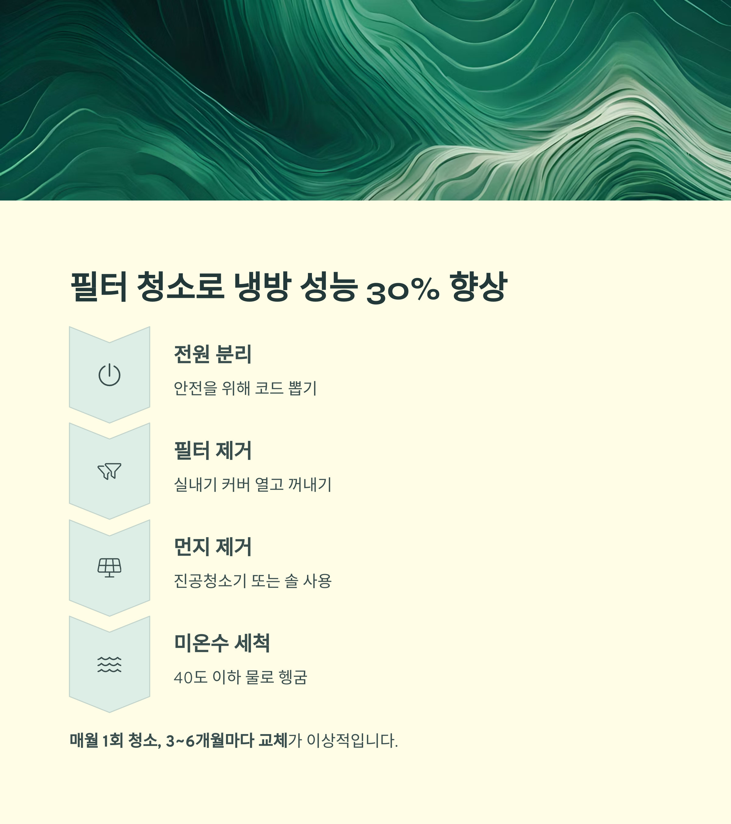 | 냉방 약함 | 필터 막힘, 실외기 과열 | 필터 청소, 실외기 환기 확보 |