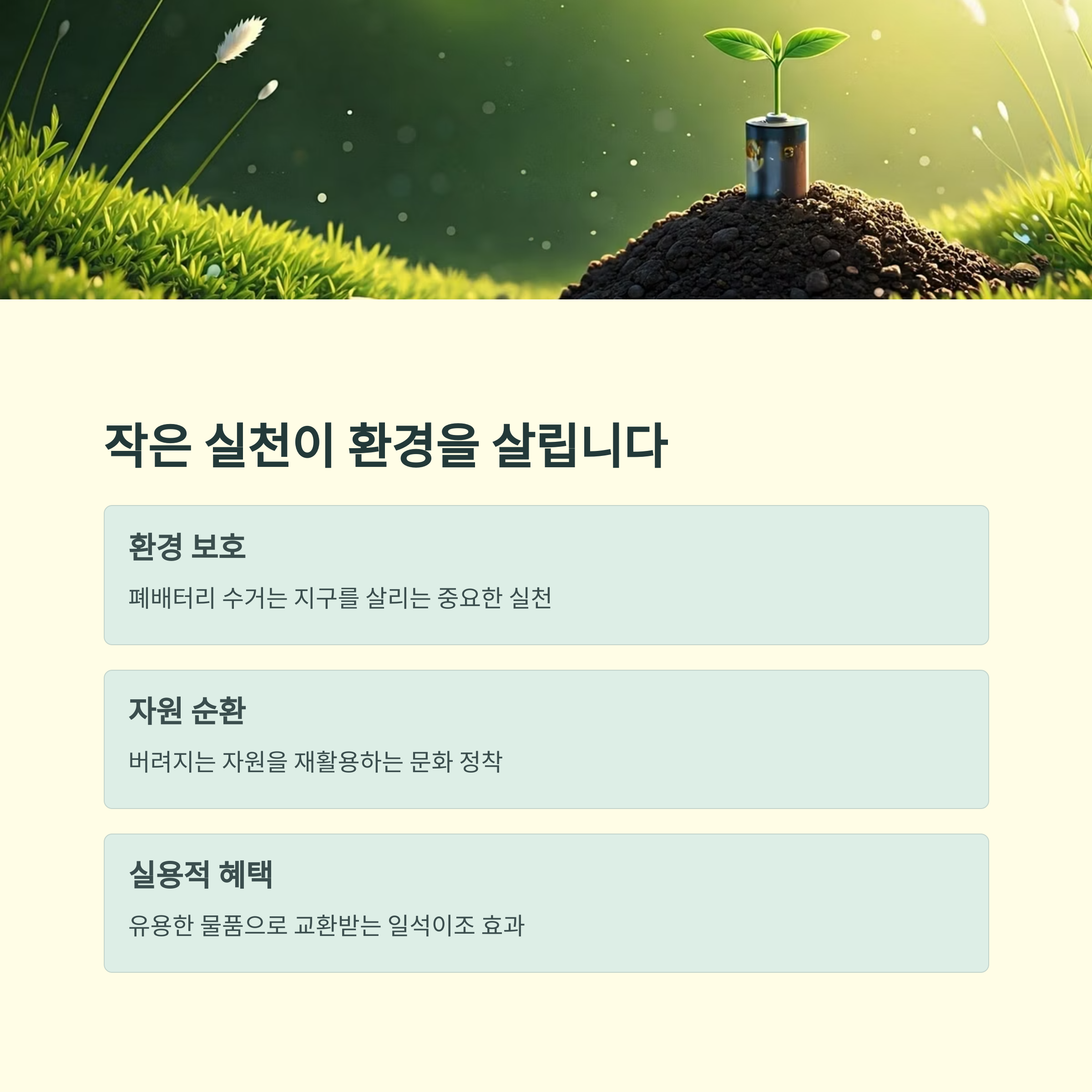 "폐배터리 수거 하나가 지구를 살리는 중요한 실천이 될 수 있습니다."