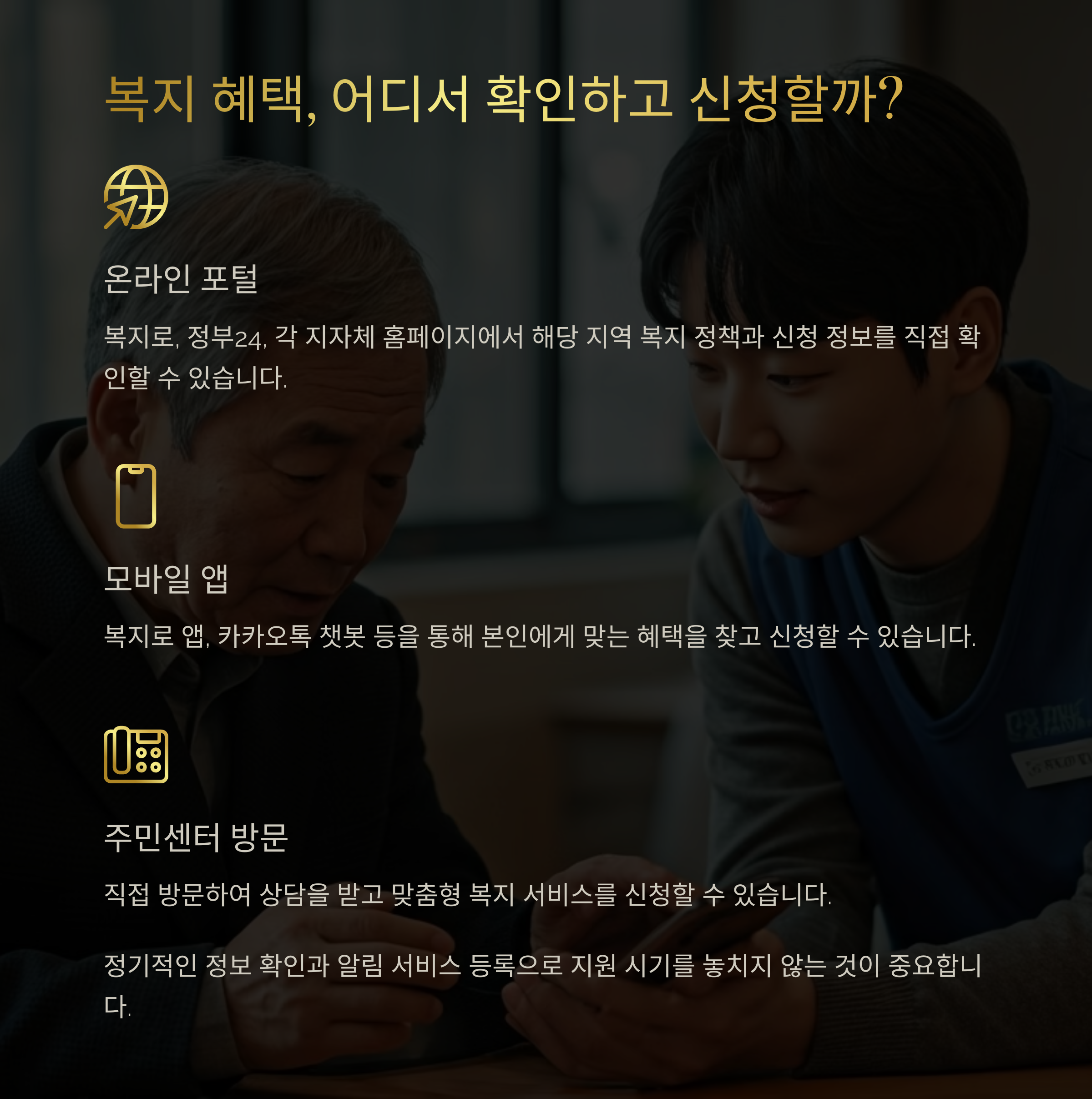 다양한 채널을 통해 본인에게 맞는 혜택을 찾고 신청할 수 있습니다.