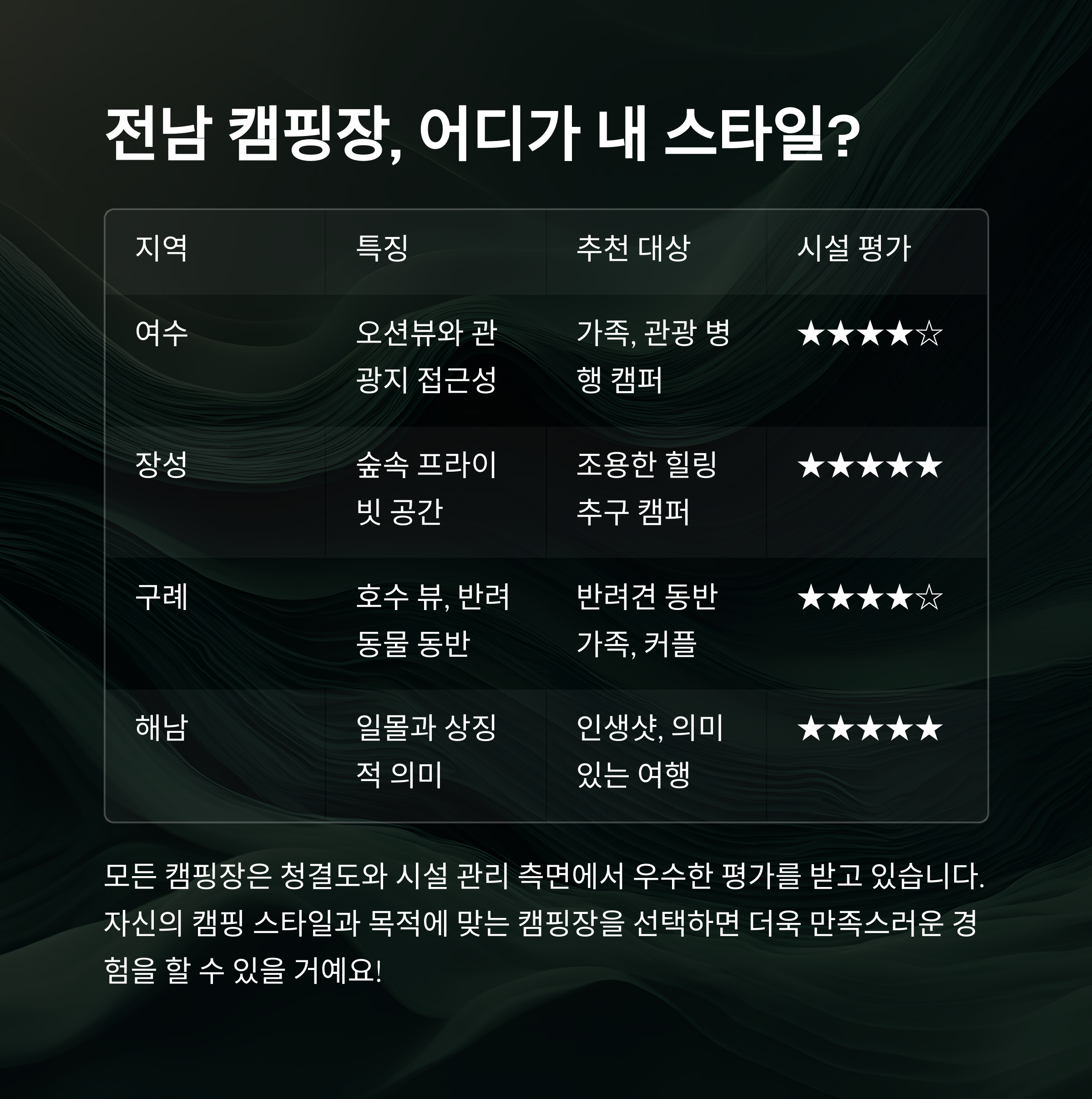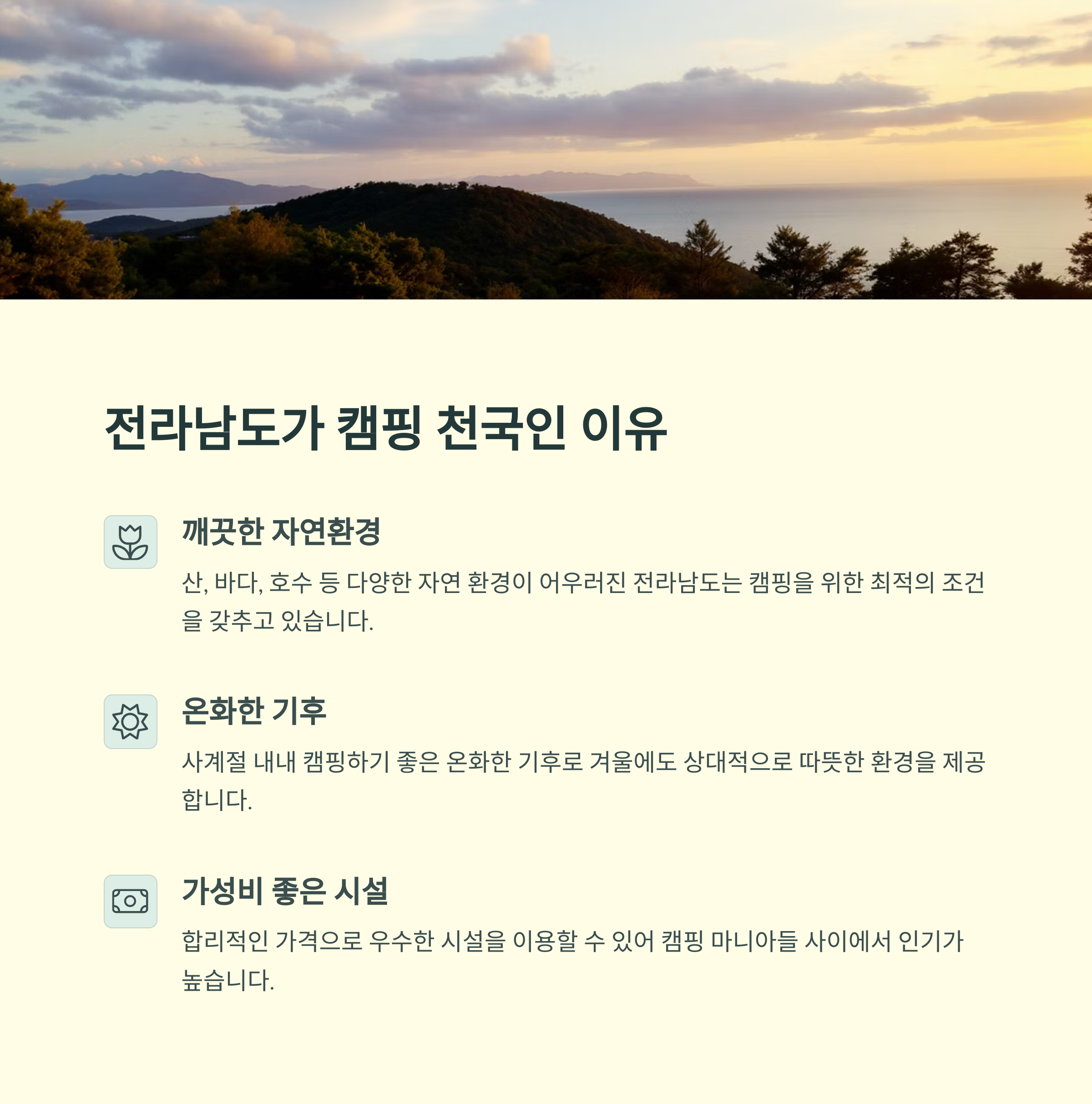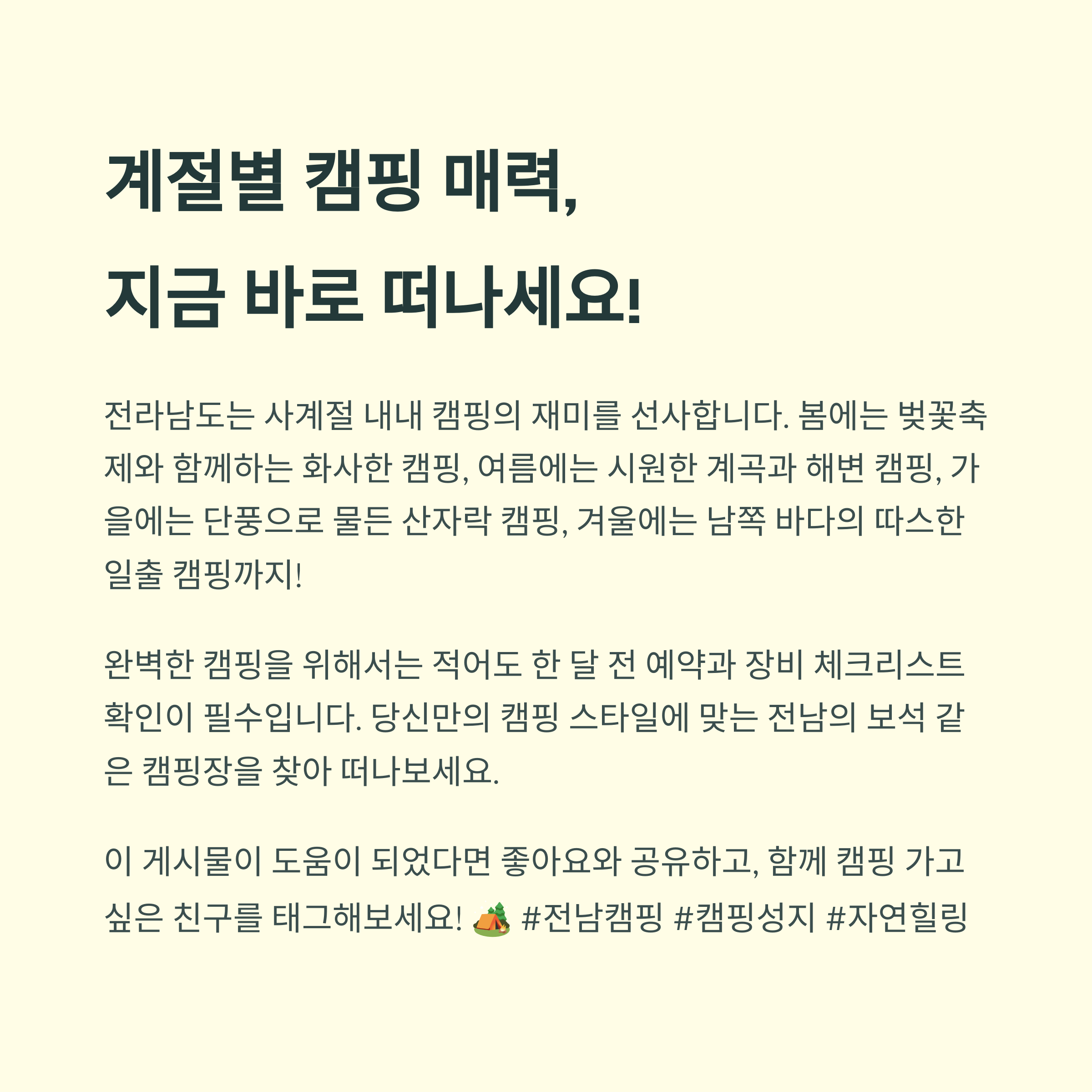 전남 캠핑의 매력 한눈에! - 계절별 추천과 마무리 팁