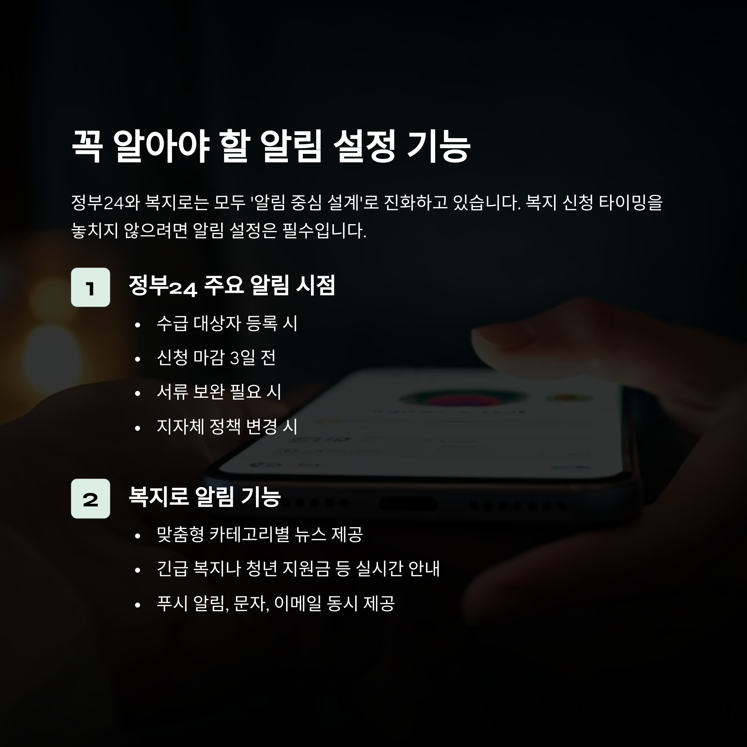 복지 신청 타이밍을 놓치지 않으려면 알림 설정은 필수입니다.