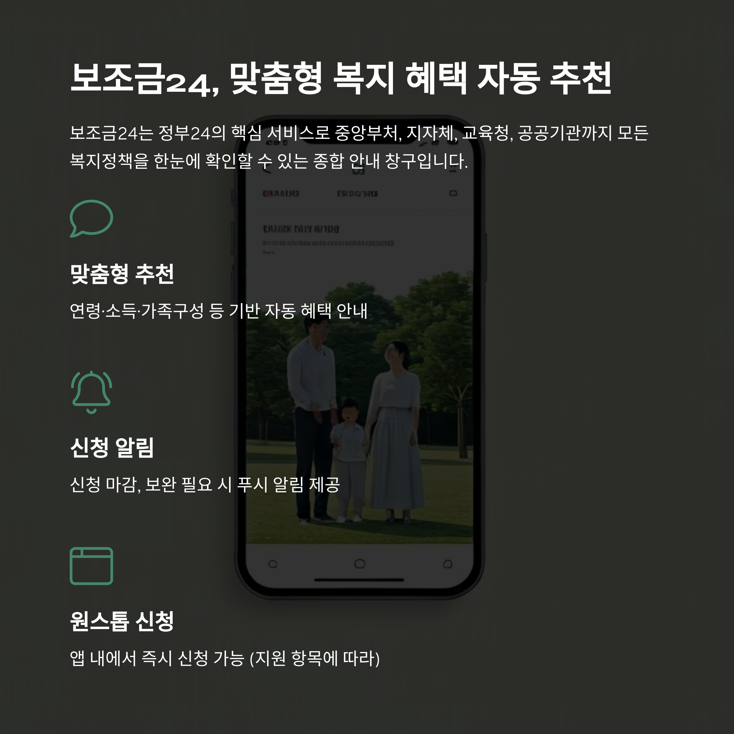 | 맞춤형 추천 | 연령·소득·가족구성 등 기반 자동 혜택 안내 |