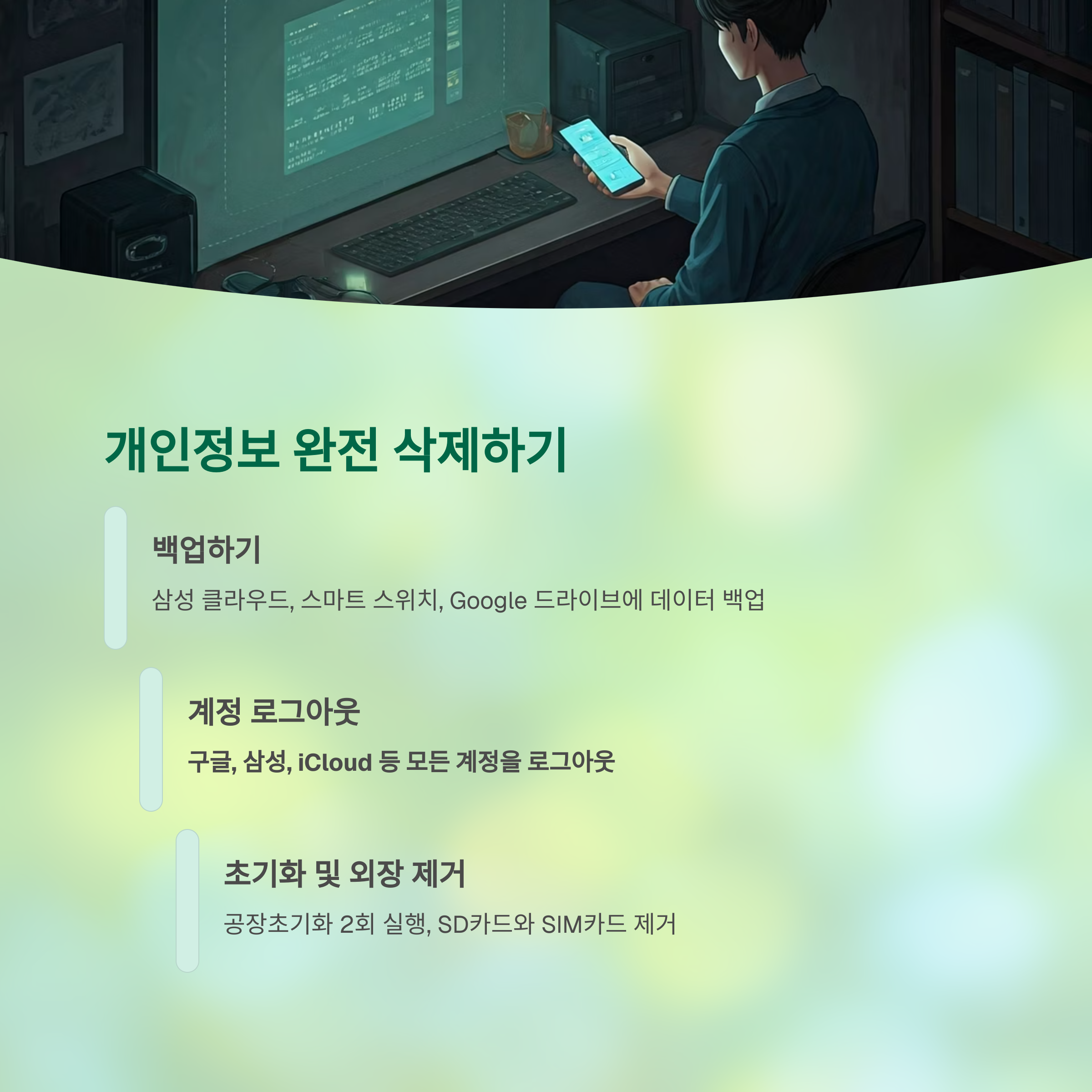 핵심: "초기화만 믿으면 위험 – 계정 로그아웃과 외장 제거는 필수입니다"