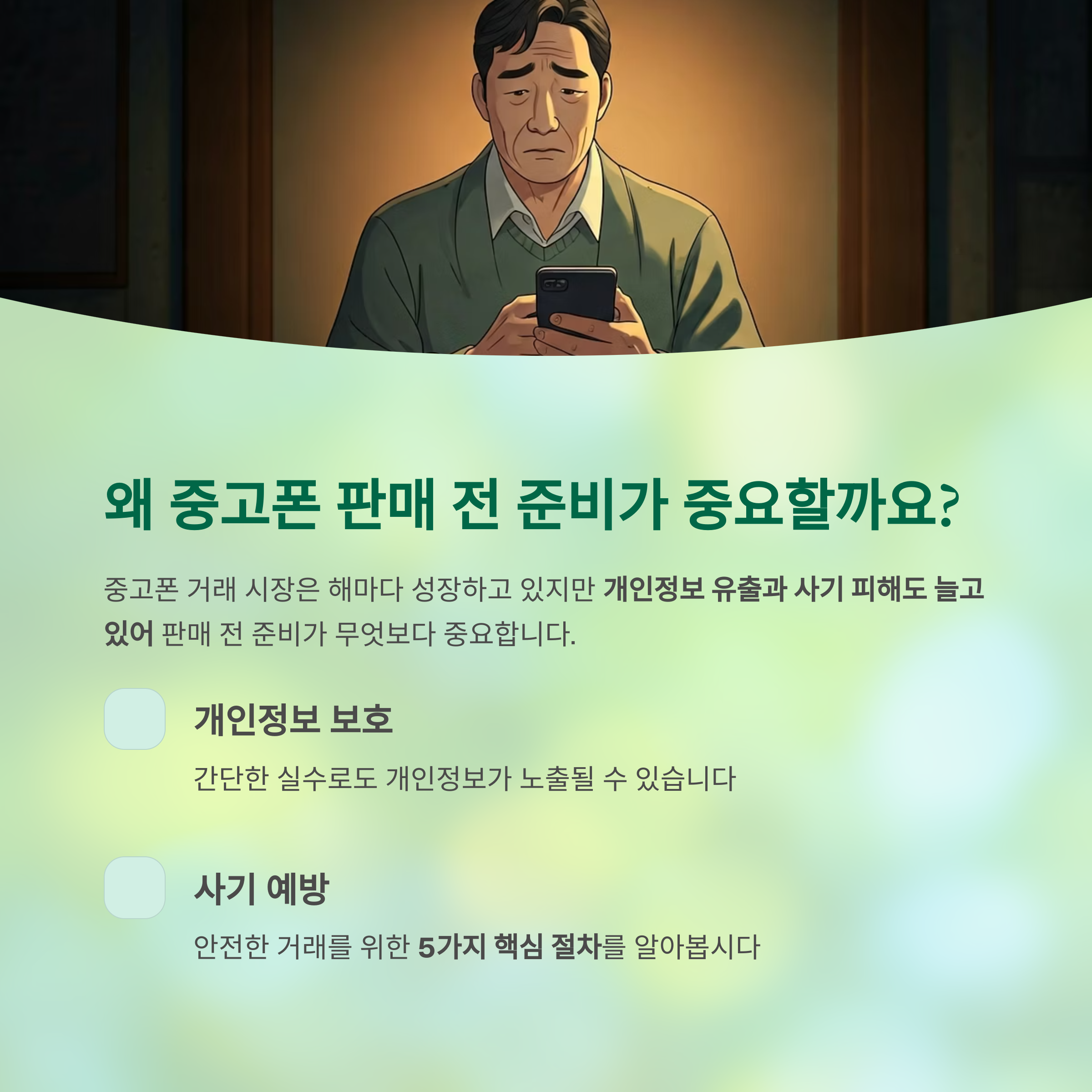 개인정보 유출과 사기 예방을 위한 중고폰 판매 전 필수 점검 리스트입니다.
