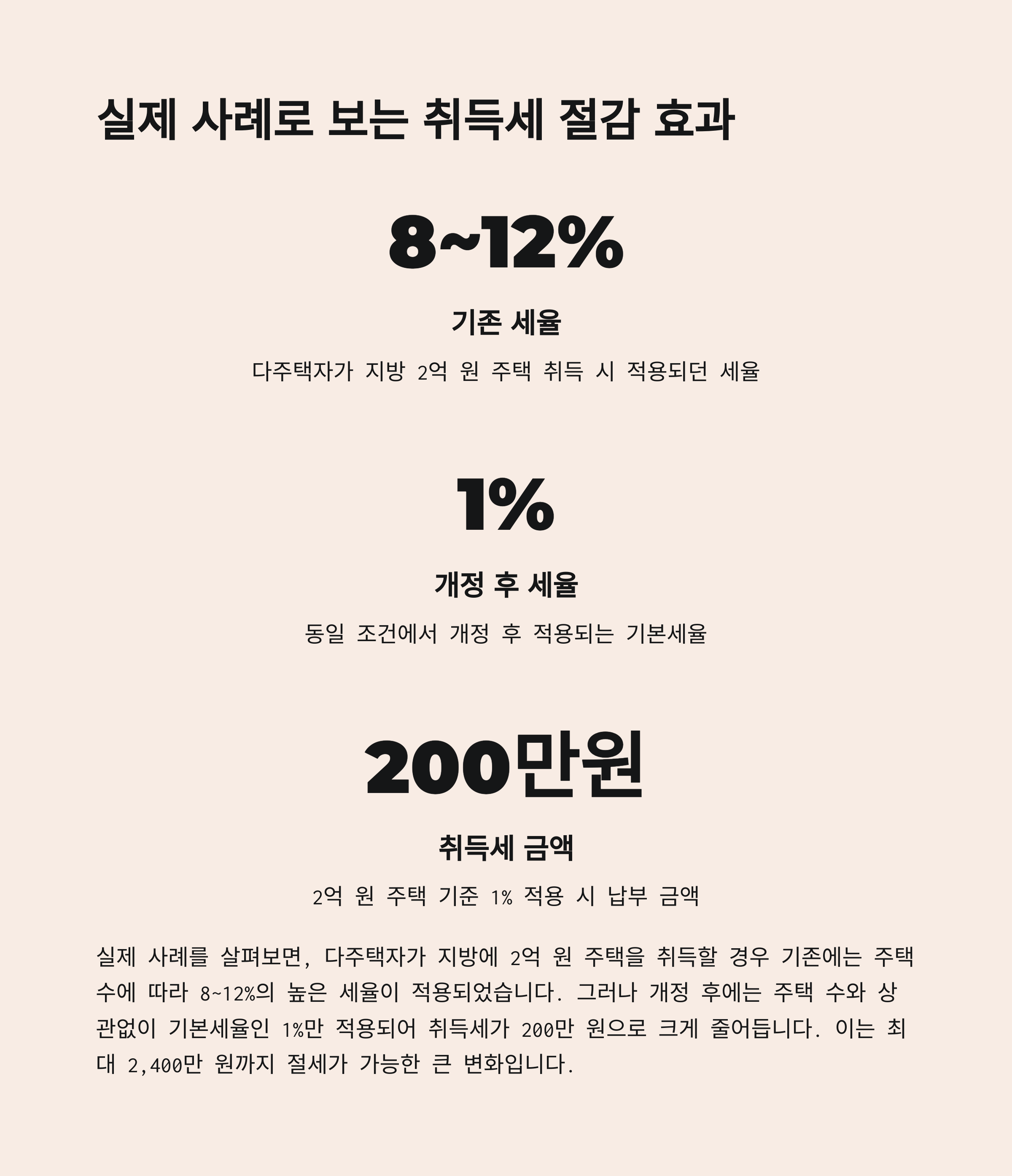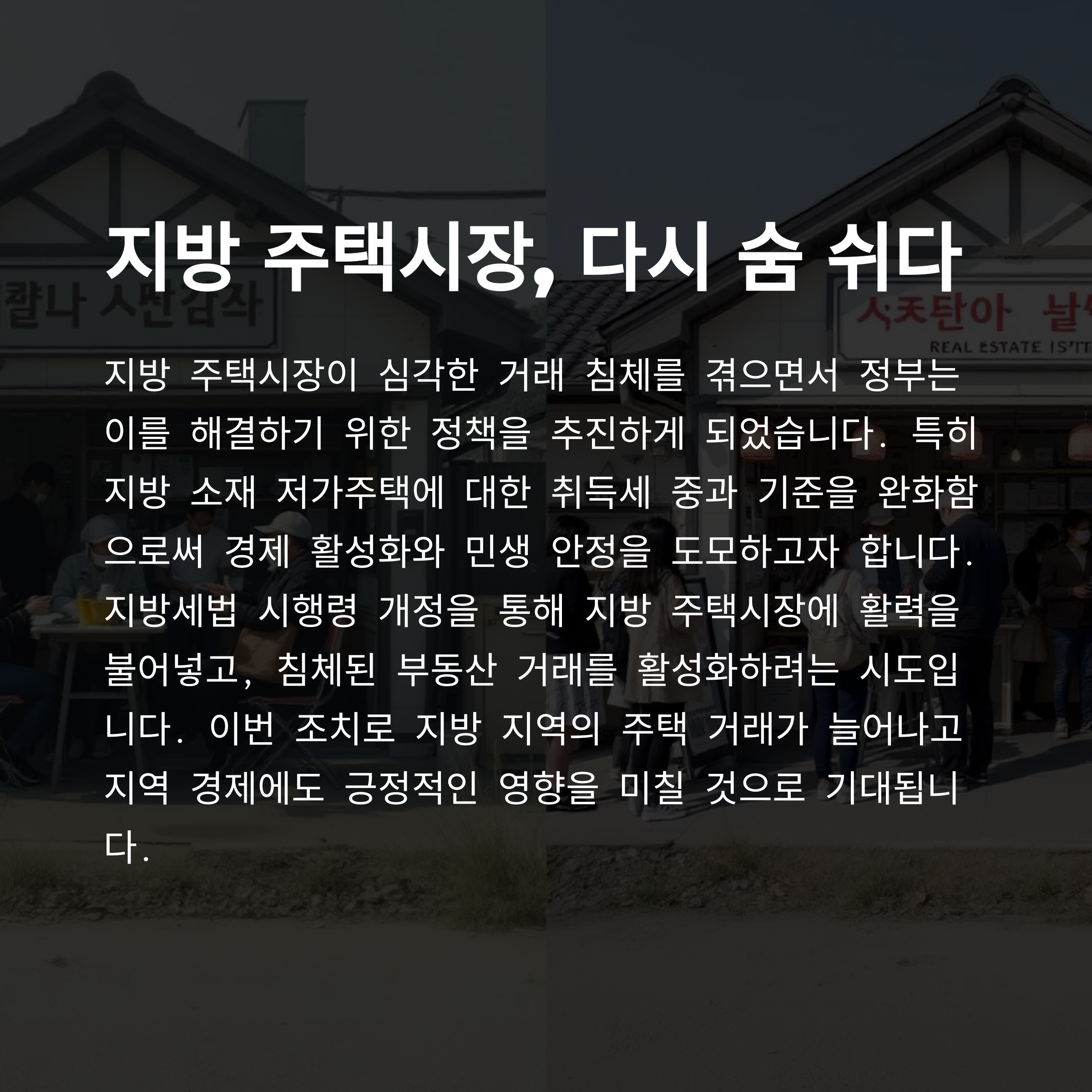 세금 부담 없이 지방 저가주택 시장에 접근할 수 있게 되었습니다.