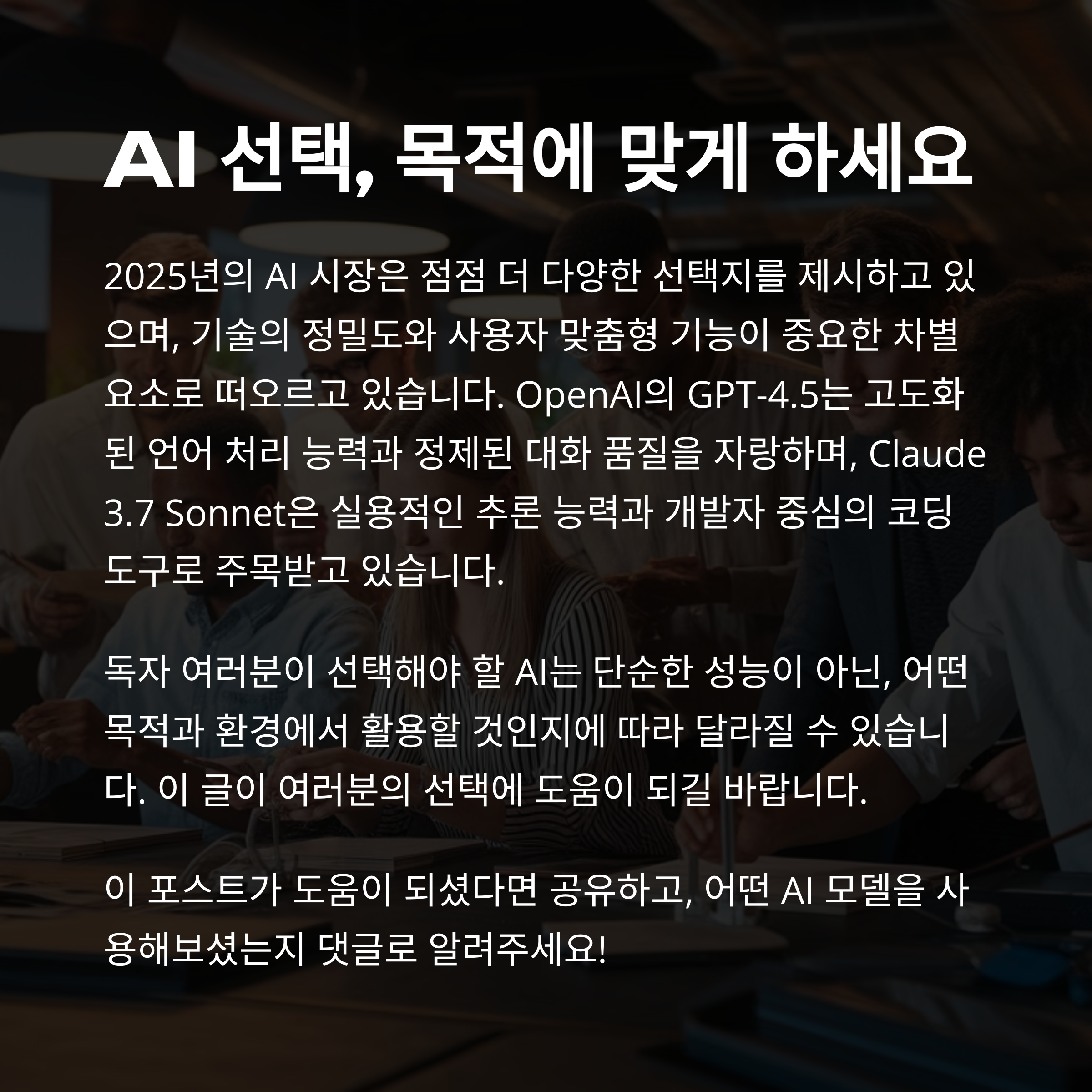 | GPT-4.5 | Claude 3.7 Sonnet | 기타 AI 모델 |