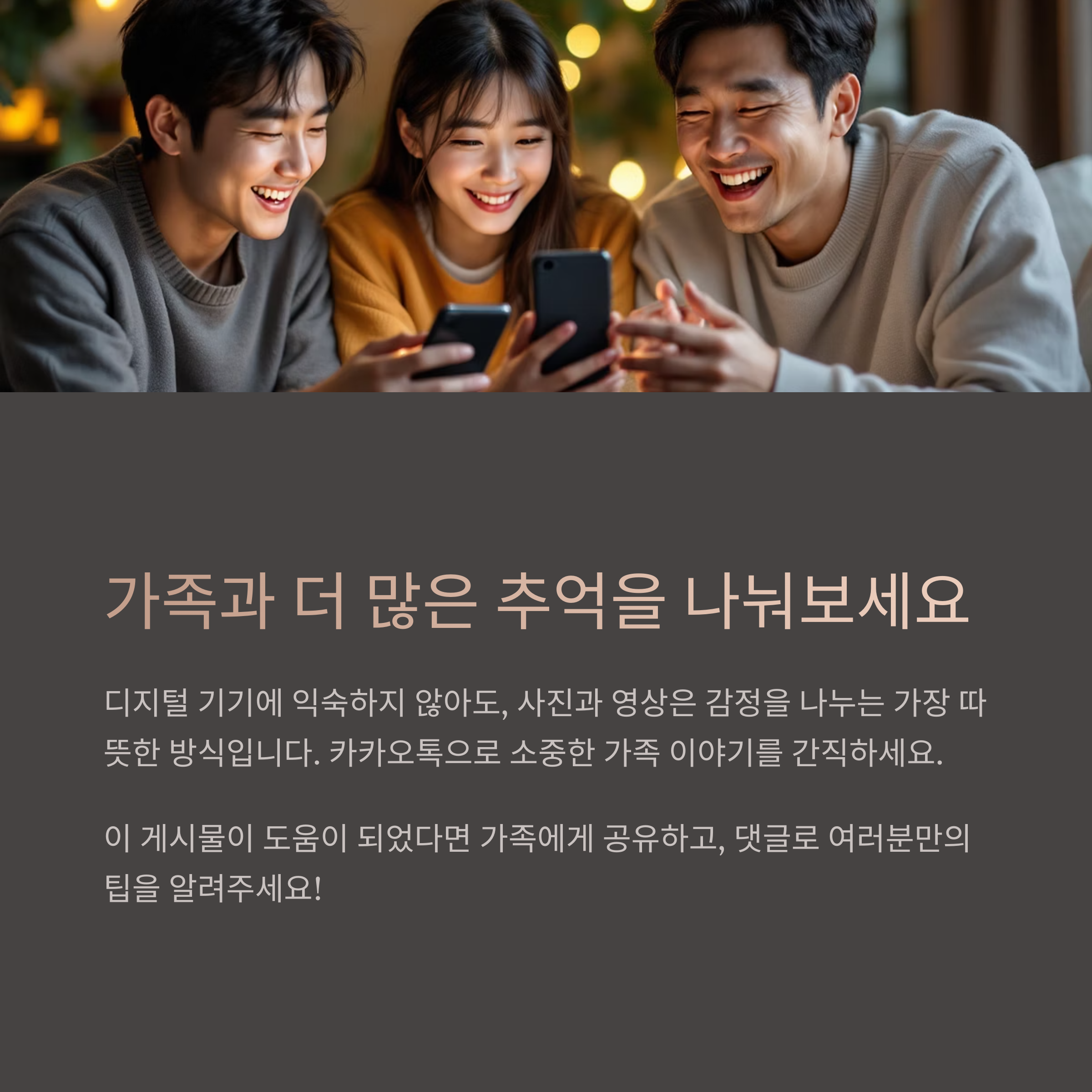 카카오톡은 단순한 대화를 넘어서, 가족 간 소중한 추억을 공유하는 가장 친숙한 디지털 도구가 되었습니다.