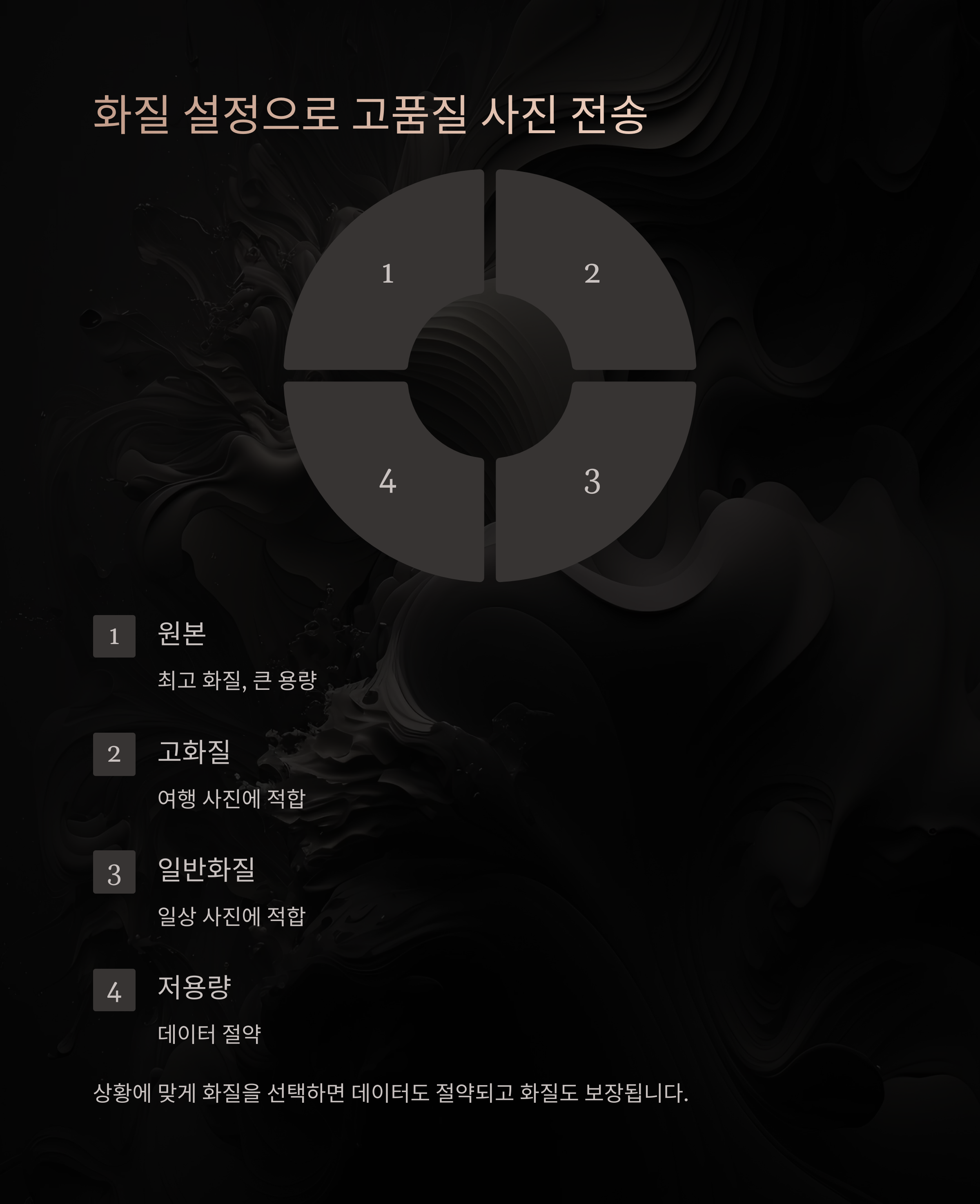 화질 설정으로 고품질 사진도 걱정 없이 전송