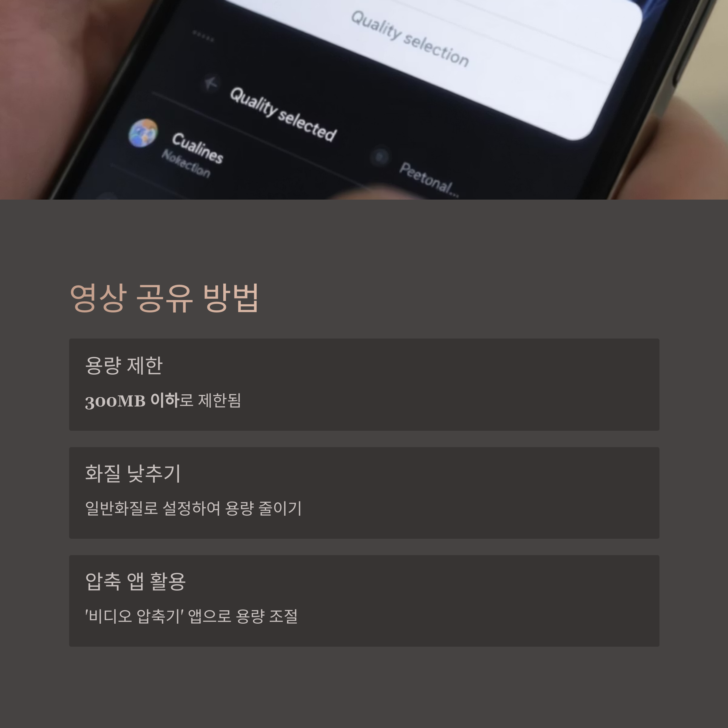 이보다 큰 영상은 '화질 낮추기'나 '비디오 압축 앱'을 사용하면 해결됩니다.