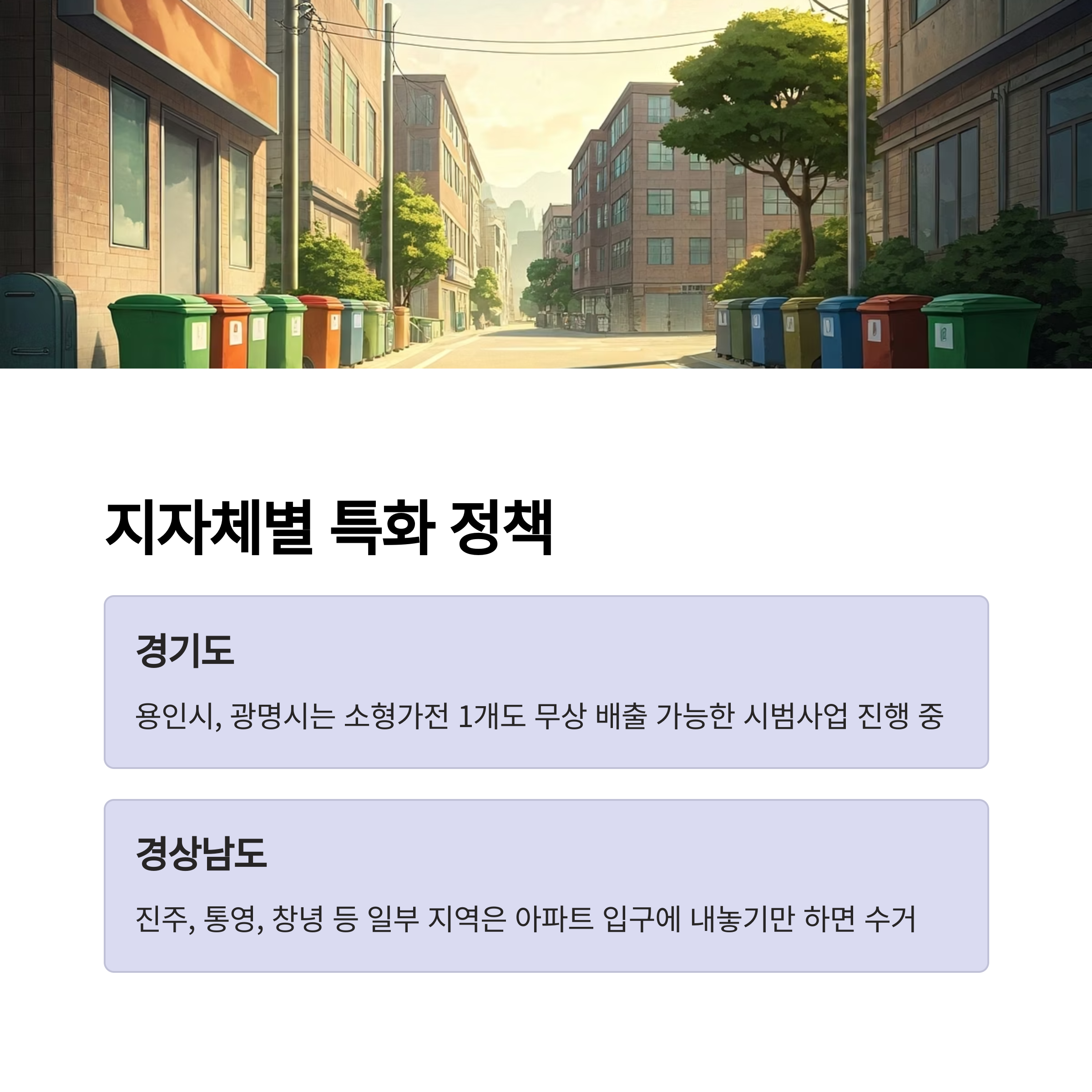 용인시와 광명시는 소형가전 1개도 무상 배출 가능한 시범사업 시행 중입니다.