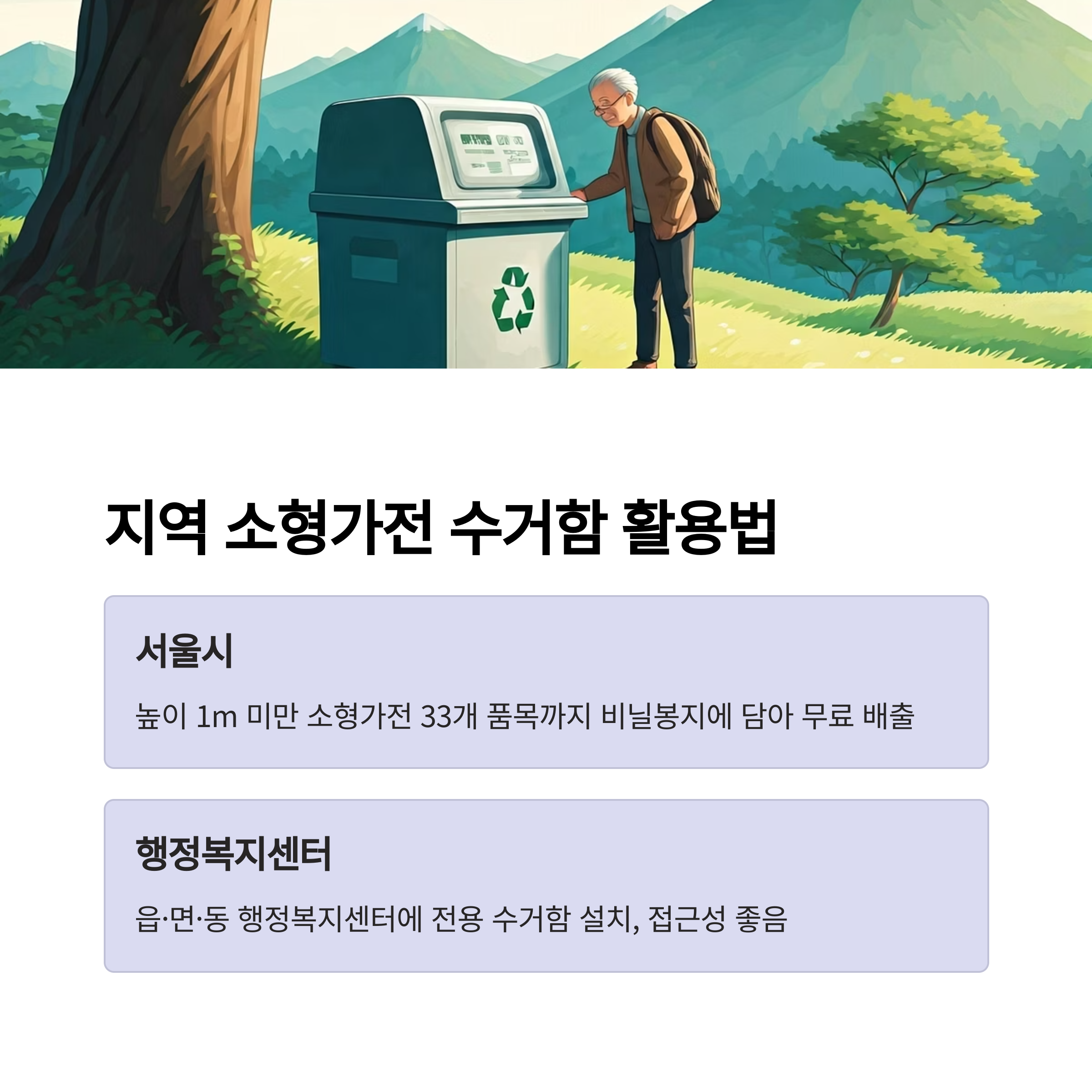 - 소형가전 1~4개: 삼성/LG 매장 또는 행정복지센터 수거함