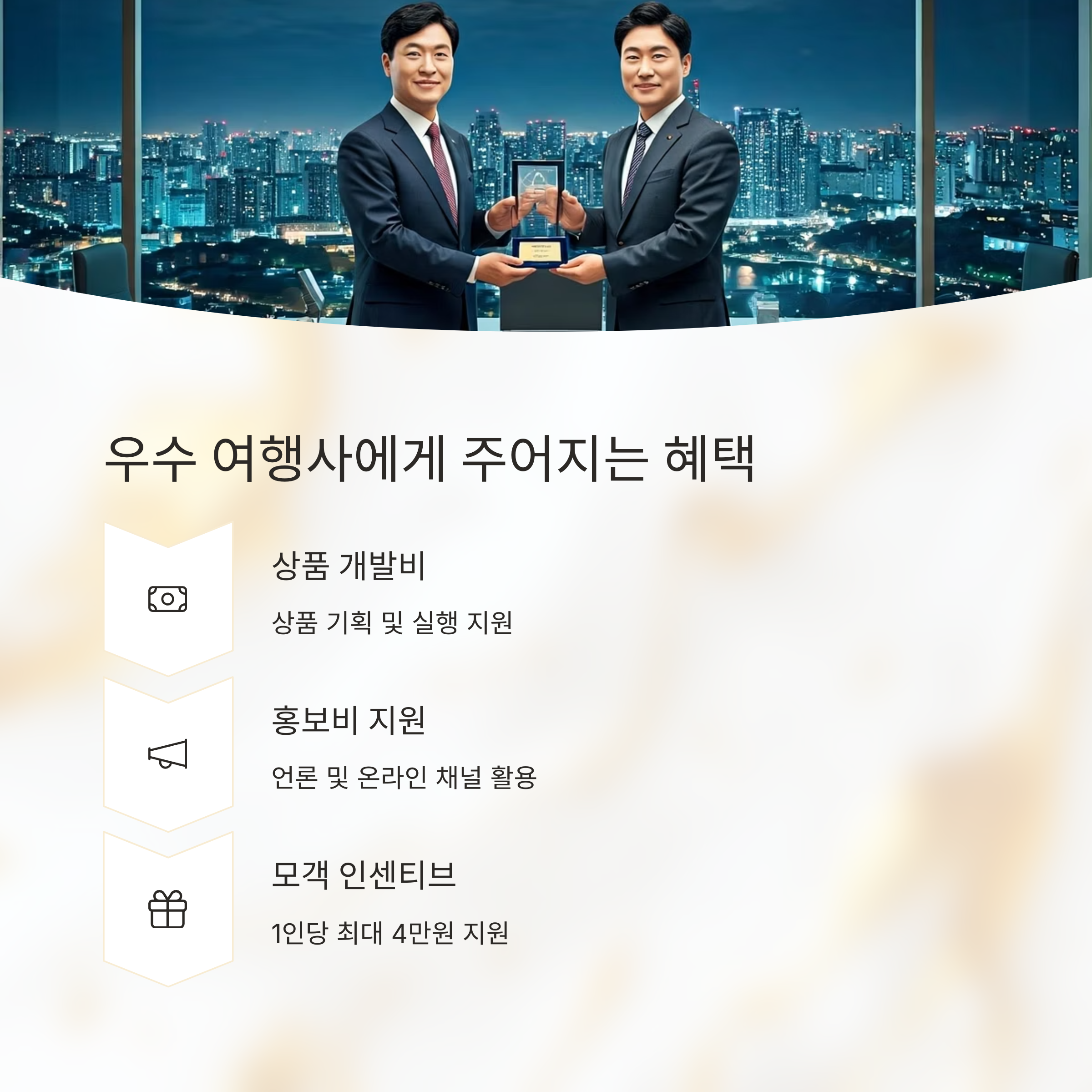 공모에 접수된 제안서는 서면 심사를 통해 5개 이내의 우수 여행사가 선정됩니다. 평가 기준은 창의성, 체류형 구성 여부, 지역자원 활용도 등이 핵심이며, 선정된 여행사에는 다음과 같은 지원이 제공됩니다.