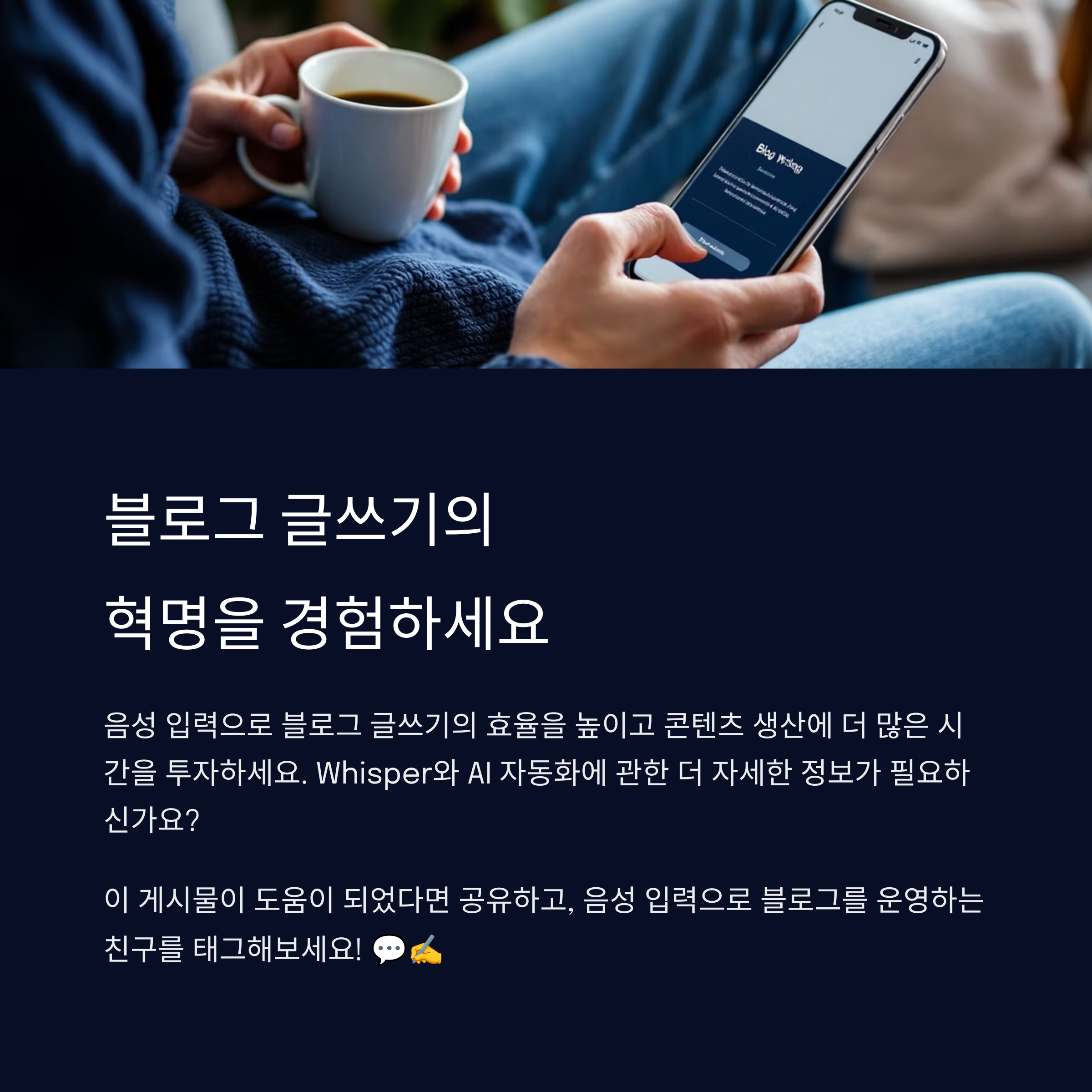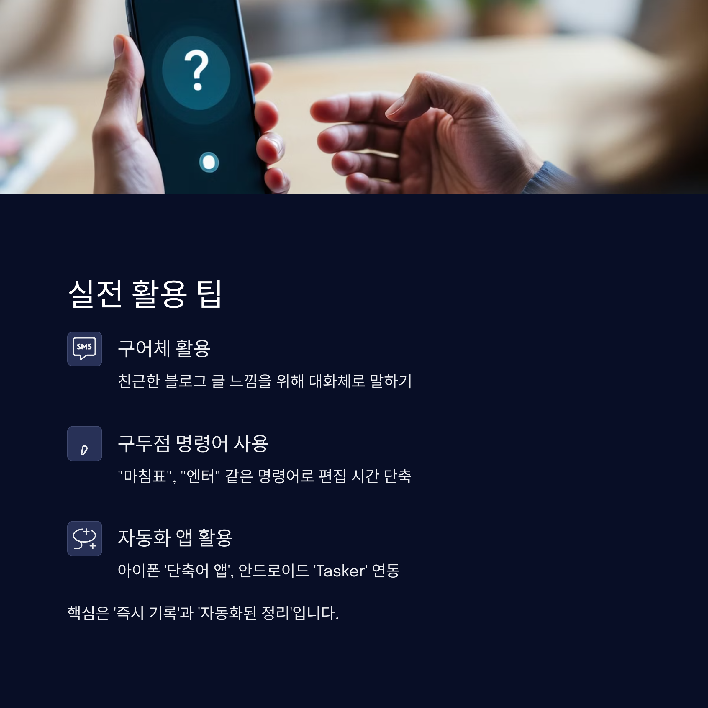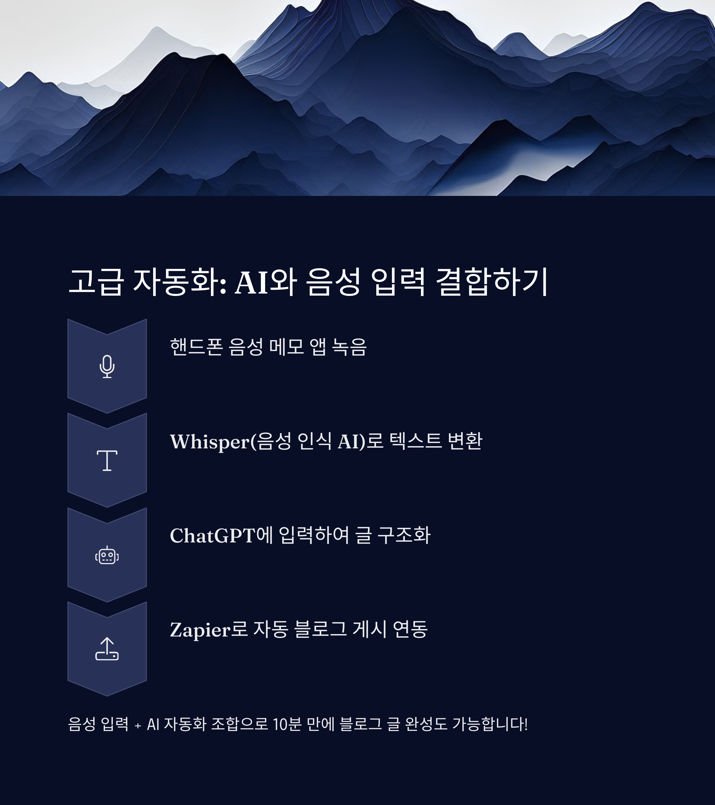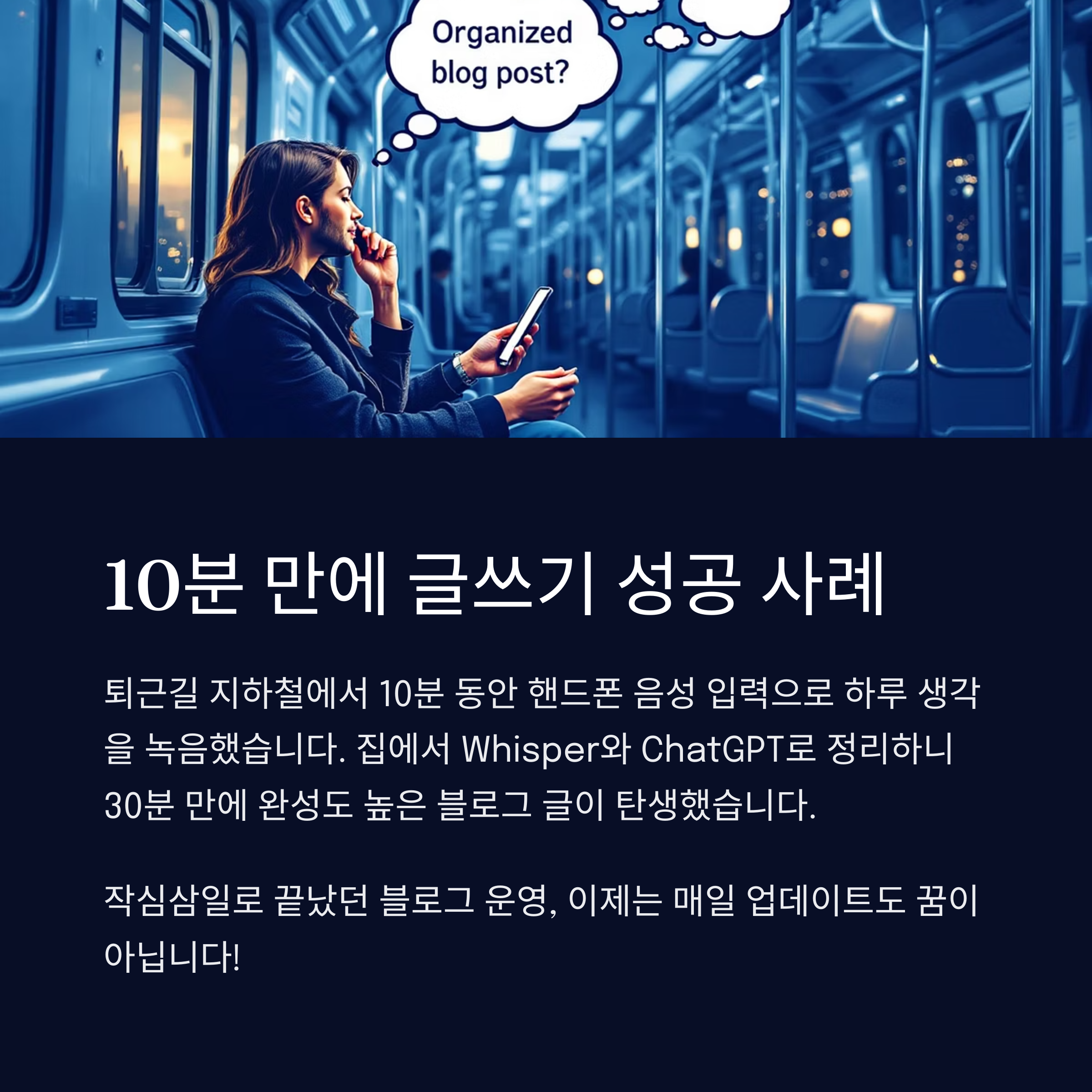 "음성 입력 + AI 자동화 조합으로 10분 만에 블로그 글 완성도 가능합니다!"