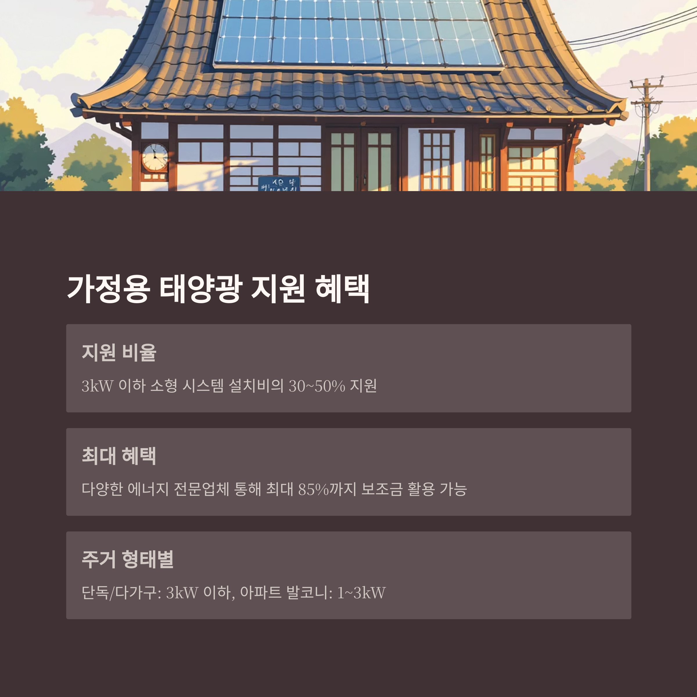 | 단독/다가구 주택 | 3kW 이하 | 30~50% |