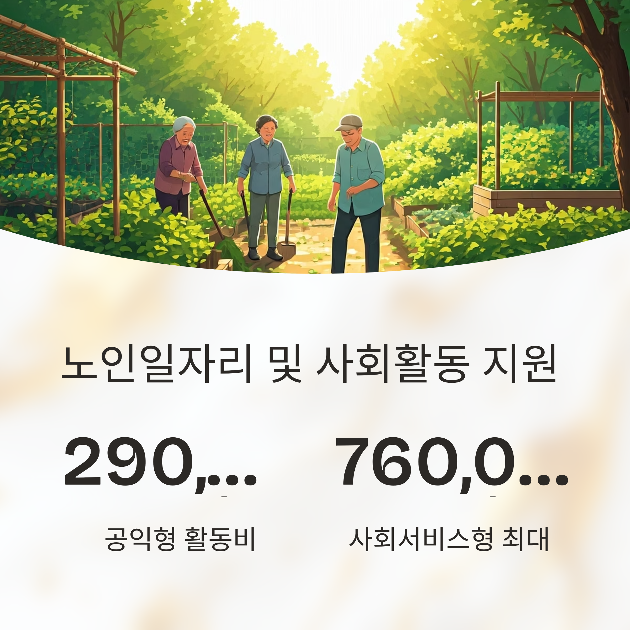 지급받을 수 있어 소득보충은 물론 활기찬 사회참여 기회가 됩니다.
