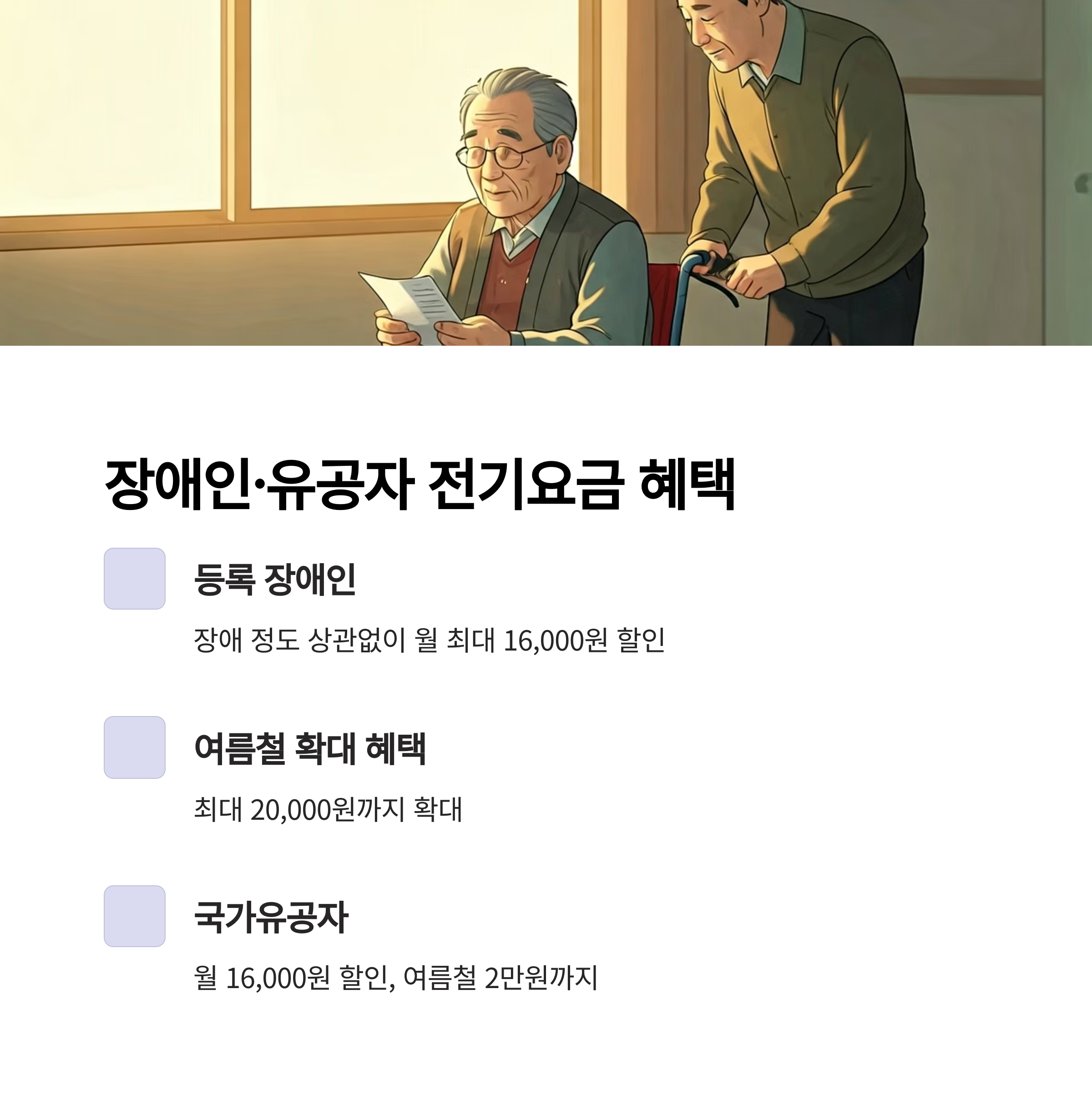 기초생활수급자, 장애인, 다자녀가구 등 50대 이상에게 유용한 공공요금 감면 제도를 정리한 실전 가이드