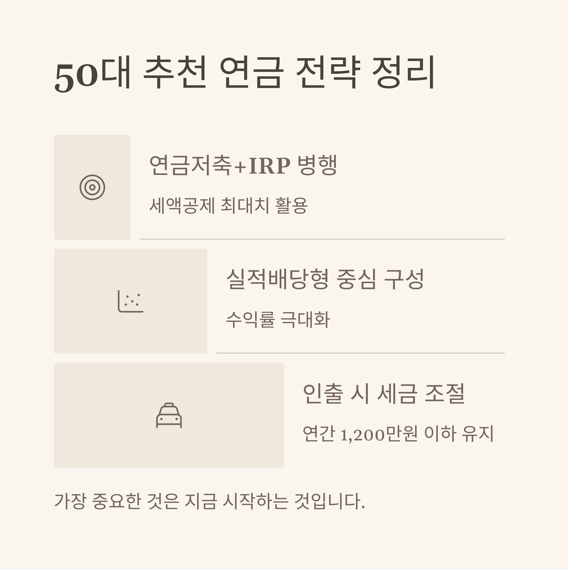 50대는 안정성과 수익성을 모두 고려한 분산 투자 전략이 필요합니다.
