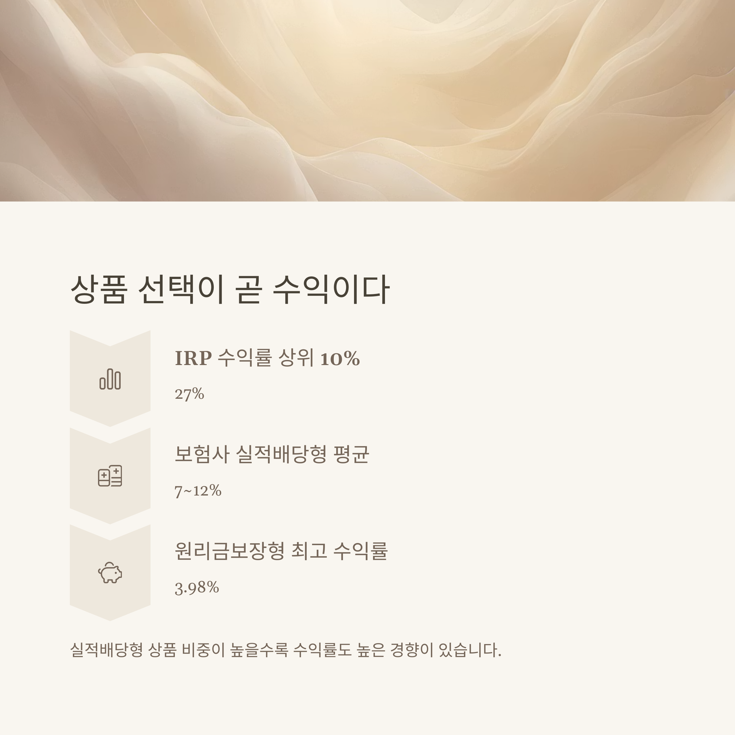 결론: 실적배당형 상품 비중이 높을수록 수익률도 높은 경향