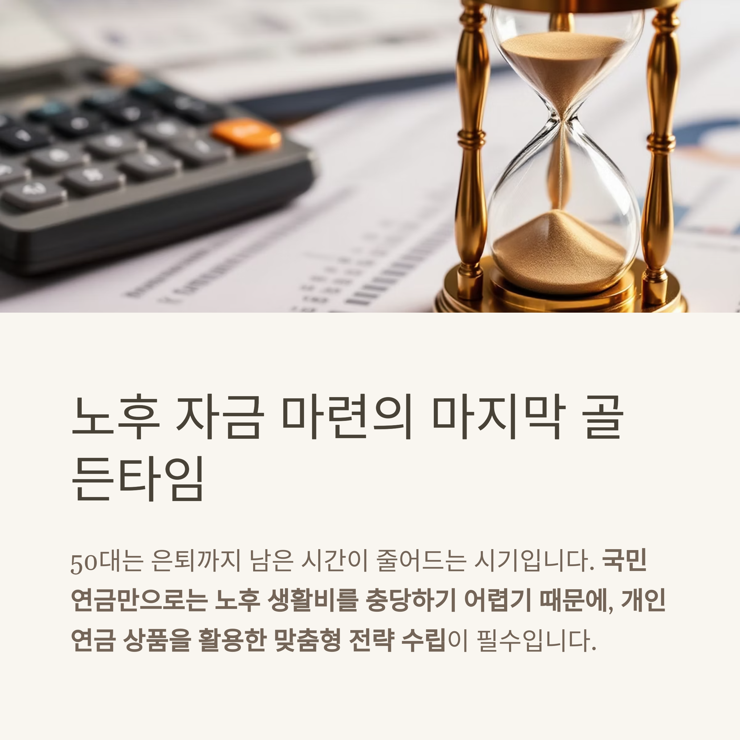 50대는 은퇴까지 남은 시간이 점점 줄어드는 시기이자, 노후 자금 마련의 마지막 골든타임입니다.