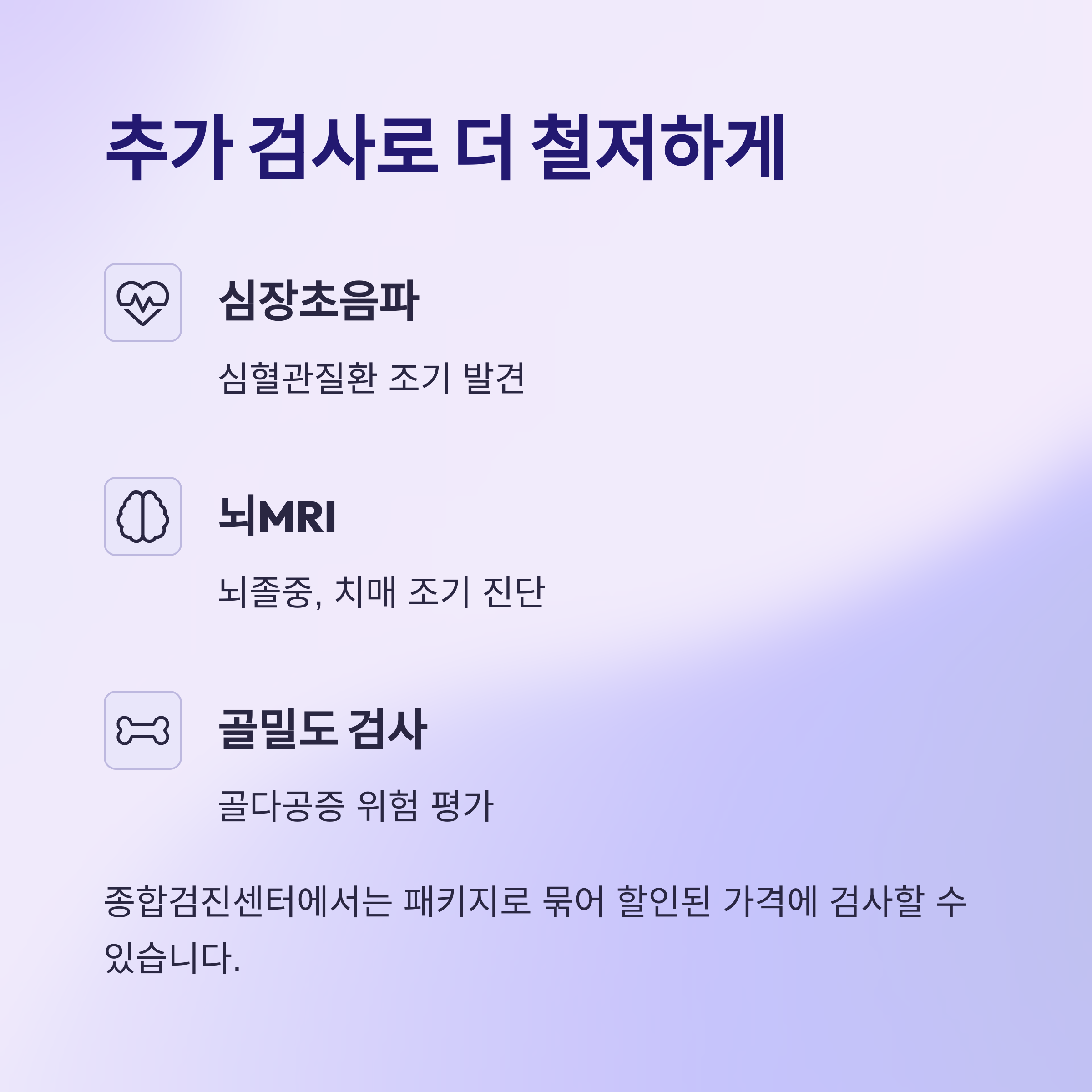 ➡️ 이 조합으로 주요 만성질환, 암, 심혈관질환, 뼈 건강까지 한 번에 점검 가능!