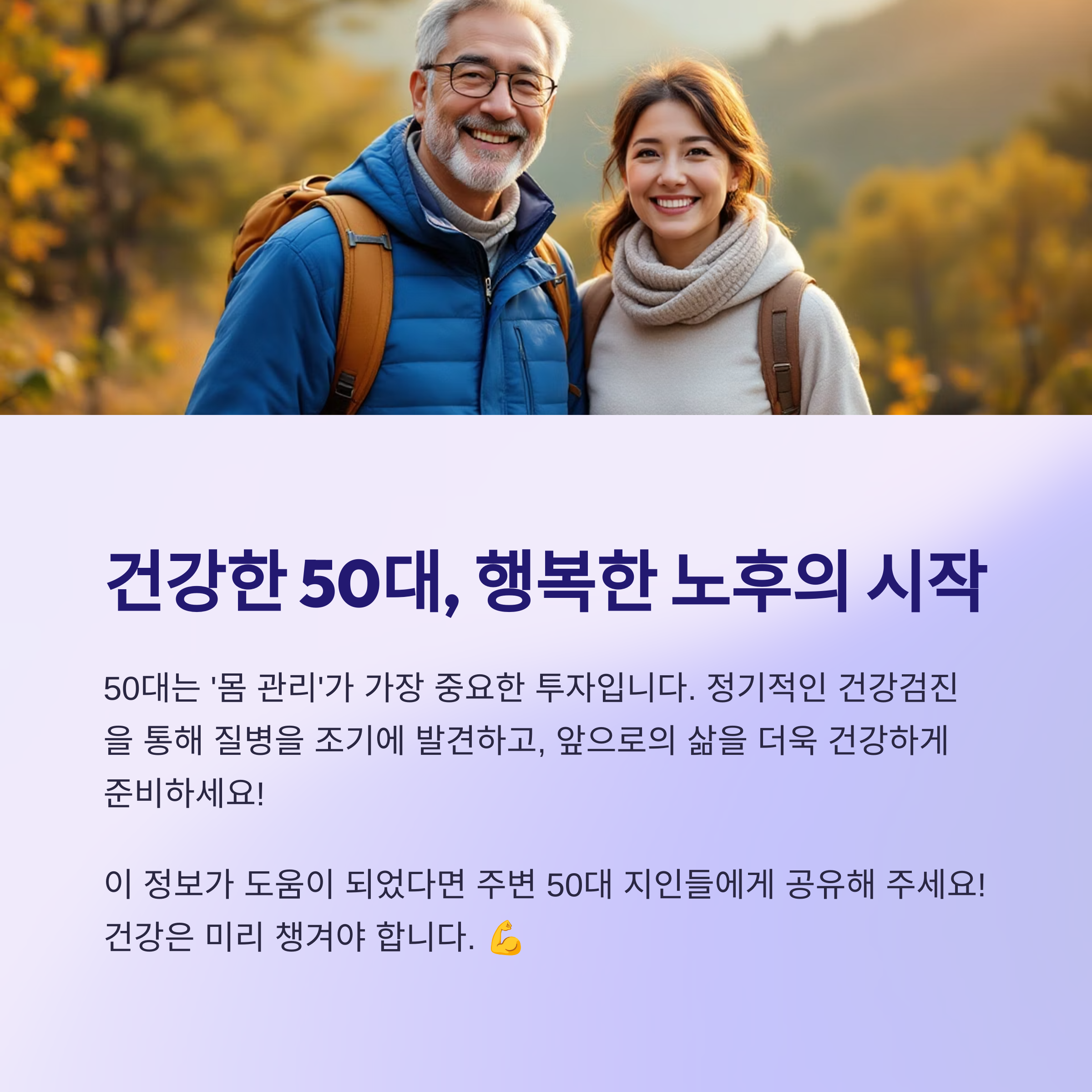 "50대 건강관리는 선택이 아닌 필수입니다. 오늘 바로 예약하세요!"