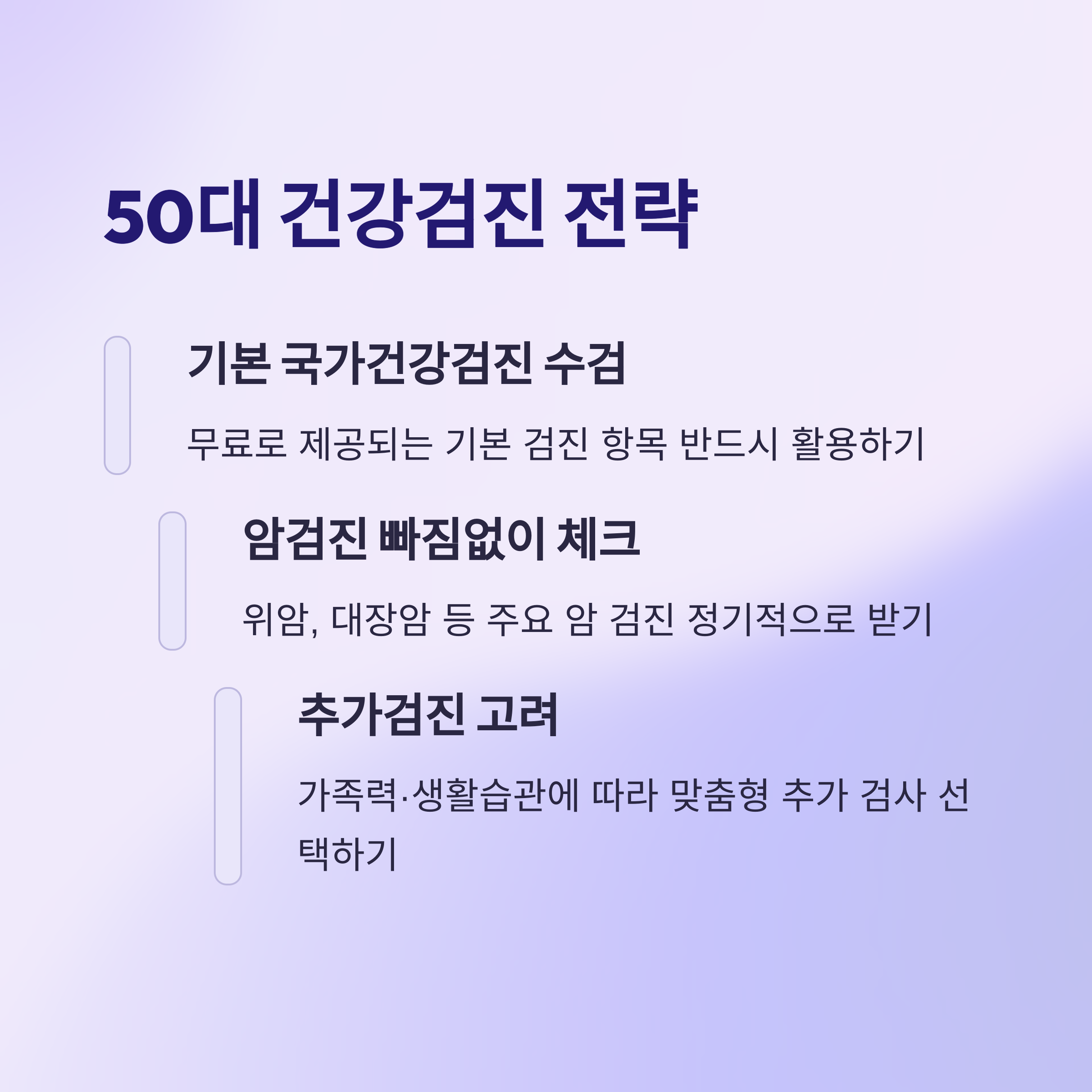 50대는 국가건강검진 대상자로, 주요 만성질환을 조기에 발견할 수 있습니다.