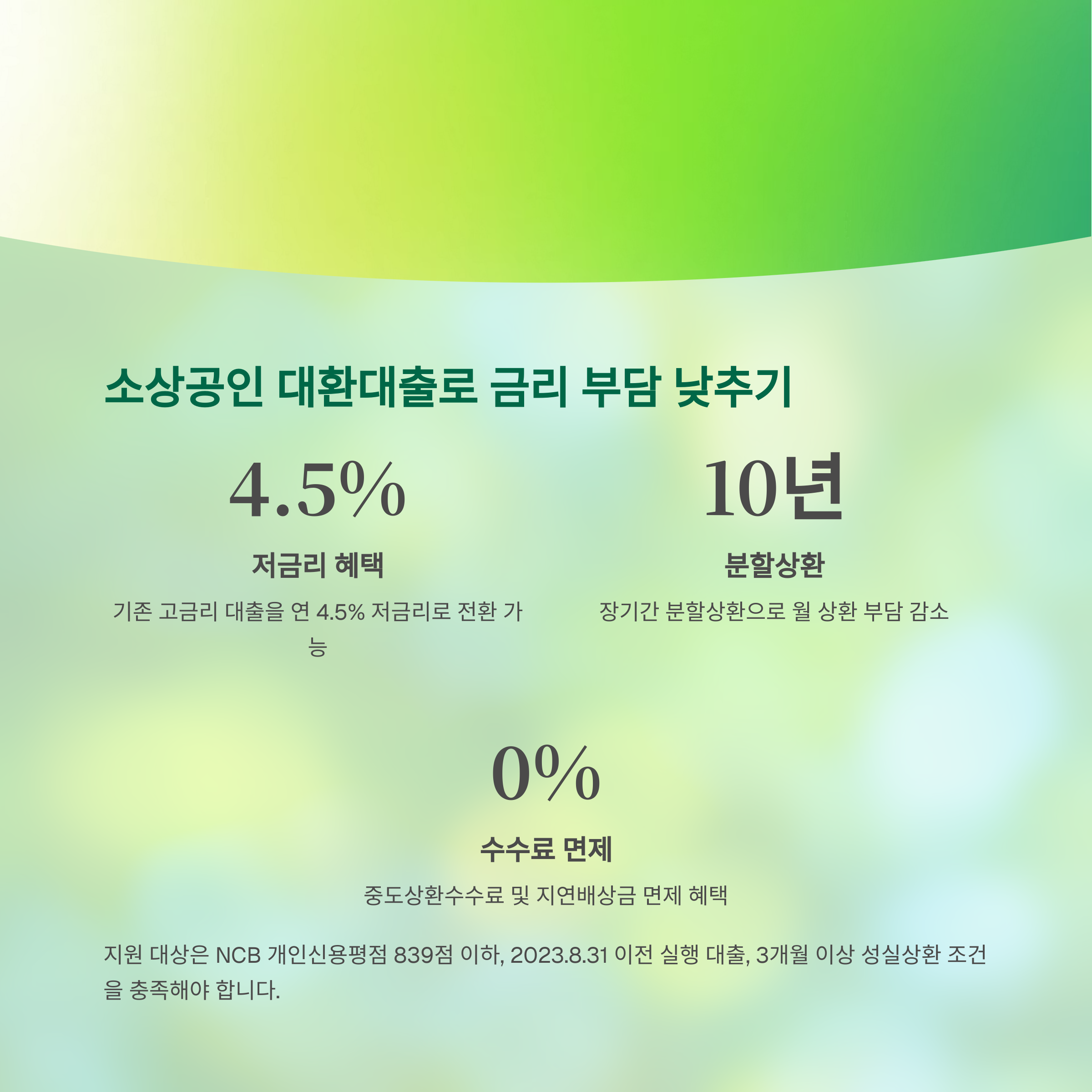 소상공인 대환대출로 금리 4.5%, 10년 분할상환 혜택